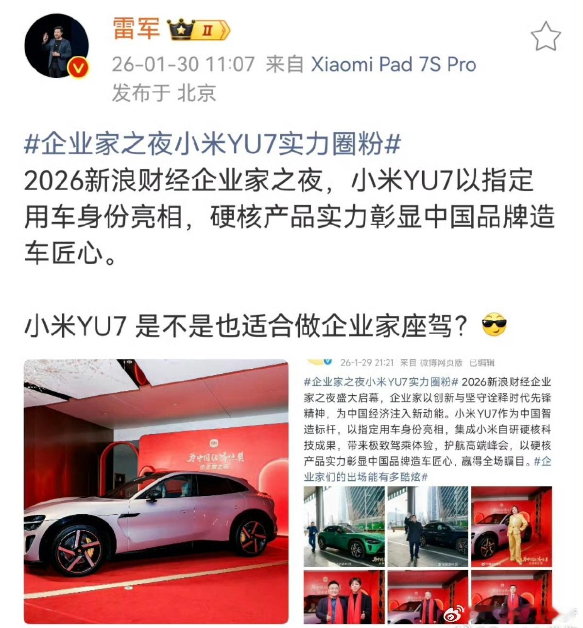 举双手支持!可能绝大多数人对企业家的刻板印象是“稳重”,觉得企业家开yu7会过于运动了
