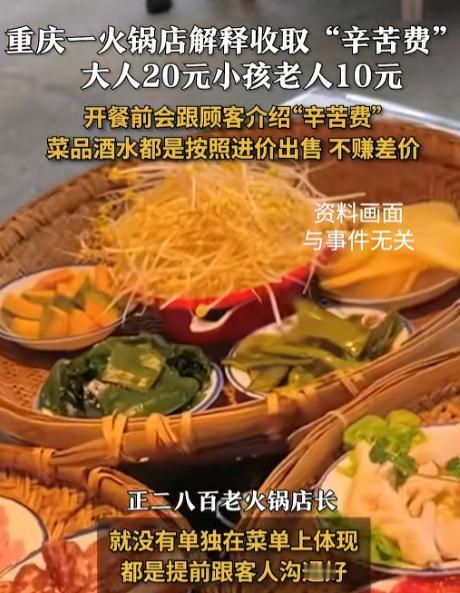 [微风]“离了个大谱!”1月26日,重庆,一女子带着全家去吃火锅,结账时觉得费用偏高,便看了眼小票,却发现有70元的“晚餐辛苦费”,这让女子不能接受,当她找老板讨个说法时,没想到对方理直气壮表示这就是明码标价的!网友:怎么不去抢! 结账的时候,很多人第一眼都会愣住。 那是一张从收银机里打出来的小票,时间是1月26日,地点在重庆,一家已经开了8年的老火锅店,菜价便宜得有点不真实,冬瓜、豆芽一块钱一份,现切牛肉最贵也才19块,看着就像回到了十年前。 可再往下看,画风突然变了,“晚餐辛苦费3人60元”“小孩老人辛苦费1人10元”。 一顿饭总共240多块,其中“辛苦费”就占了70块。 那天晚上,带着一家老小来吃火锅的女士,就是在看到这几行字时彻底不舒服了。 说实话,在重庆这种火锅遍地的城市,人均六十左右能吃得挺好,本来算是良心价,真正让她接受不了的,不是钱本身,而是这个名字——“辛苦费”。 这三个字一下子就让人心里起了刺,原本是简单的吃饭结账,突然变成了被明明白白提醒:你这一口一口吃的,不只是菜钱,还在给别人“辛苦买单”。 很多人第一反应不是“贵”,而是“膈应”。 餐饮这两年有多难,大家心里都有数,这家店的老板,为了不在价格战里被拖死,想了个“算账算到明面上”的办法。 差不多一个月前,他干脆把菜品价格压到进货价,几乎不赚菜钱。 房租、水电、人工这些没法省的成本,就统一算成“辛苦费”:中午每人15块,晚上每人20块。 他的想法很直白:菜我不赚你钱,成本我摊开说清楚,你吃得明白,我也活得下去。 为了推这个模式,店里提前贴了说明,菜单上也标得清清楚楚。 要是客人实在不接受,当场免单,退钱也行,老板宁可少赚,也想把这个模式跑通。 问题是,他低估了人的心理。 在大多数人的观念里,员工工资、店铺成本,本来就该算在菜价里。 你把这些单独拎出来,写成一项“辛苦费”,就会让人产生一种被额外收费的感觉。 哪怕总价没变,心里也会不舒服。 大家愿意为一盘贵毛肚掏钱,是因为默认价格里已经包含了服务,环境和人工。 一旦你把“人工费”单独亮出来,就等于告诉顾客:这些原本不该你操心的事,现在要你直接负责。 这也是为什么网上争议这么大,很多人担心的甚至不是这70块,而是“开了这个口子以后怎么办”。 今天收辛苦费,明天会不会多出清洁费、桌椅折旧费、空调使用费? 名目一多,谁心里都没底。 那天晚上,为了这70块争论不休,其实争的不是钱,而是谁该为成本买单。 监管部门介入得很快,结论也很明确:商家不能随意增加收费项目,整改,取消。 火锅店很快照办,把“辛苦费”撤了。 但事情并没有真正结束。成本不会消失,老板只能把这些钱重新算回菜价里,以后,豆芽可能不再一块钱,牛肉也不可能再卖19。 从表面看,顾客赢了,账单“干净”了,从结果看,价格还是涨了,只是换了种方式。 那个想把账算明白的老板,最后还是被现实教了一课:在生意场上,有时候,不是你算得不清,而是算得太清,反而没人愿意买单。 信源:荔枝新闻