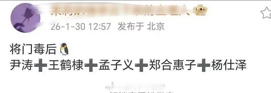 🍉将门毒后:2.5日开机,导演尹涛、王鹤棣、孟子义、郑合惠子、杨仕泽