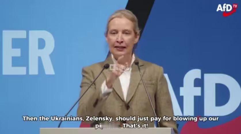 德国政坛炸了锅!   德国政坛这锅“被炸”的局面,或许只是一个开始。欧洲接下来的走向,很可能会因为这一次的“喊话”,发生微妙变化。   魏德尔的发声不是孤例。1月25日当天,她还联合马斯克通过视频连线亮相选择党竞选活动。   马斯克数周内两次公开支持该党,这番联动让原本就沸腾的德国政坛更添波澜。德国总理朔尔茨直接对马斯克的做法表达不满,双方的对立进一步放大了政坛分歧。   魏德尔的指责精准戳中了德国社会的痛点。她在后续表态中补充说明,西方曾向乌克兰释放加入北约和欧盟的相关信号,德国跟着加码对俄制裁,最终受伤的还是本国民众。   德国民众正在为这些政策付出切实代价,洗澡时要节省热水,取暖时要精打细算,普通家庭的生活质量直线下滑。   北溪管道被炸事件的调查僵局,更让民众对政府的信任度持续走低。这起事件已过去三年多,丹麦、瑞典和德国分别启动调查却始终没有明确结果。   瑞典、丹麦早已宣布结束调查,对关键细节讳莫如深。德国检方虽称调查仍在进行,却从未对外披露实质性进展。   匈外长西雅尔多曾公开吐槽,北溪事件的官方调查像个笑话。他直言相关方根本没有认真推进调查,这种状态既可耻又令人愤慨。   德媒曾曝光过一些相关调查线索,涉及多方关联人员,乌方始终予以否认,德国政府却始终保持沉默,这种不作为让民众难以接受。   德国政府的援乌政策还在持续加码。欧盟1月刚公布900亿欧元对乌贷款方案,其中600亿欧元专门用于军事支持。   德国作为欧盟内部最大单一援乌国,单独提供的援助已超170亿欧元,远超英国的150亿欧元,在欧洲援乌名单中稳居前列。   这笔巨额援助的资金来源的是欧盟联合发债。德国本就面临经济增长乏力、通胀高企的困境,还要承担联合发债带来的长期压力。   工业界因能源价格上涨利润收缩,普通民众承受天价账单,政府却将资源持续投向海外战场,这种失衡引发的不满正在持续发酵。   欧盟内部的援乌分歧也已摆上台面。围绕900亿欧元援助的武器采购权限,德法两国立场尖锐对立。   法国要求乌克兰优先采购欧盟军工装备,试图借订单推动欧盟军工自主化。德国则坚决反对,认为限制第三国采购会束缚乌克兰自卫能力。   分歧的核心是现实需求与战略诉求的碰撞。乌军当前40%武器来自美国,欧盟装备不仅占比不足30%,还缺乏防空、精确打击等核心能力。   德国更看重战场实效,不愿因采购限制影响援助效果。法国则想借机整合欧盟军工产能,摆脱对美国技术的依赖。   多数欧盟国家站在了德国这边。波罗的海三国、荷兰等国更倾向优先保障战场需求,毕竟这些国家要么紧邻俄乌战场,要么更依赖跨大西洋联盟。   法国的主张仅获希腊明确支持,在欧盟内部陷入孤立,这也让欧盟援乌政策的推进更加艰难。   美国的态度转变进一步加剧了欧洲的困境。美国去年底就宣布削减对乌军援预算,2026年还会进一步压缩规模。美国对乌援助中60%资金用于本土军工生产,本质是借援乌之名补贴国内产业,这种利己模式让欧洲独自承担更多援乌压力。   乌克兰的处境也愈发艰难。前线兵力持续吃紧,后方财政完全依赖西方输血。泽连斯基政府频频向欧洲喊话求援,却改变不了局势走向。   一旦德国放缓援助节奏,乌克兰的装备补给、财政运转都会受到直接冲击,战场态势可能随之反转。   德国选择党的支持率攀升,印证了民众对当前政策的不满。该党虽被主流舆论视为右翼,但其聚焦民生的立场精准契合了普通选民的诉求。   魏德尔没有提出复杂政策,只是把最现实的问题摆上台面,就引发广泛共鸣,这本身就说明德国社会的心态变化。   德国政府的“价值观”叙事已难以服众。当民众连基本取暖需求都要妥协时,所谓对抗“侵略”的正当性就显得苍白。   政府的对外战略忽略了本国民生,忽略了国家主权被侵犯后的应有态度,最终只会失去民众支持。   欧洲的援乌阵营正在逐步瓦解。法国、斯洛伐克、匈牙利等国已先后表达援乌疲态,德国政坛的分歧只是联盟裂痕的集中体现。这场没有明确终点的战争,正在耗尽欧洲的耐心与资源。   后续德国的政策走向至关重要。作为欧洲经济核心,德国的态度会直接影响其他欧洲国家的立场。   若政府坚持现有援乌路线,国内不满情绪还会持续升级。若放缓援助节奏,西方对乌支持体系可能随之崩塌。欧洲的未来走向,正被这场政坛风波悄悄改写。