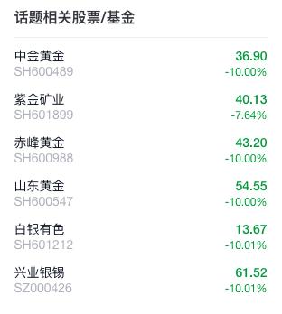 贵金属板块今日集体低开,中金黄金、白银有色、豫光金铅等多只个股跌停,晓程科技低开超过19%,赤峰黄金、西部黄金等同样大幅下跌。消息面上,早盘现货黄金与现货白银价格一度快速下跌,跌幅超过1%。