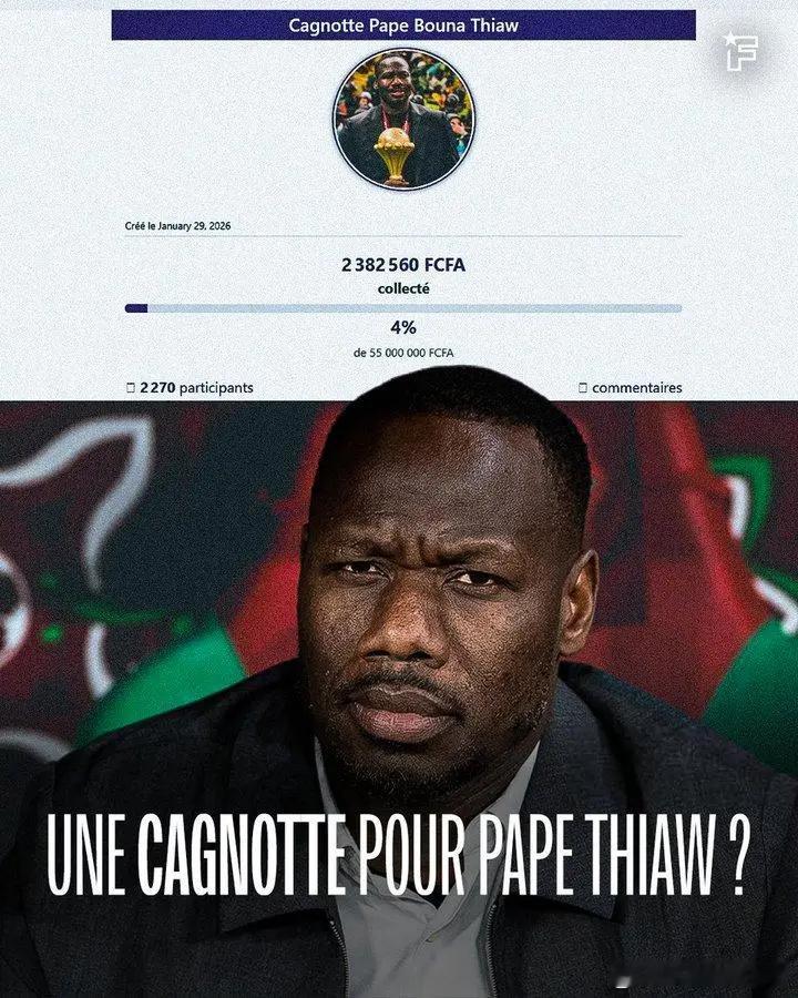1月19日,非洲杯决赛,塞内加尔1-0击败摩洛哥,拿到冠军。比赛中,塞内加尔主帅帕佩-蒂亚一度带队罢赛。近日,他因此遭到罚款。随后,塞内加尔球迷表示要替他交罚款。