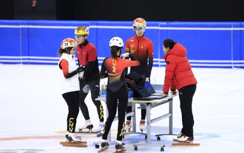即将出征米兰冬奥会的中国短道速滑队范可新、林孝埈、刘少昂、孙龙等进行出发前的上冰训练。米兰冬奥短道速滑2月10日开赛,共将产生9枚金牌。本赛季4站世巡赛中,以加拿大队为代表的欧美队伍实力突出,中国队将面临激烈的竞争。 领队刘浩表示:“短道速滑比赛的偶然性和不可预测性很强,我们希望运动员不要给自己设限,在每个项目中都尽全力做好自己。”