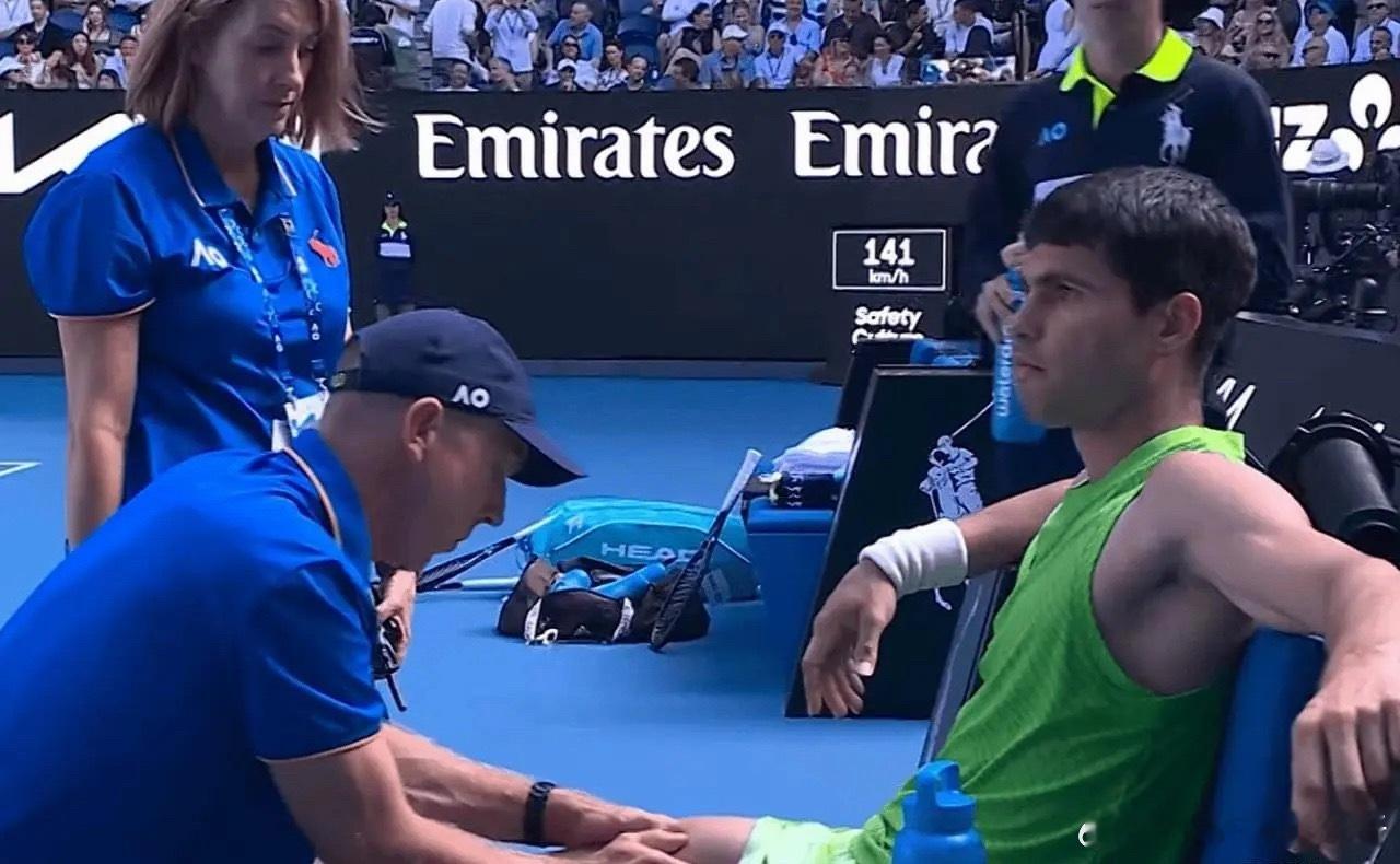 北京时间1月30日下午,澳网男单半决赛,世界第1的阿尔卡拉斯对阵世界第3的兹维列夫。前2盘,兹维列夫全部落败。第三盘,阿尔卡拉斯请求医疗暂停。兹维列夫很生气,向裁判抱怨对手诈伤。