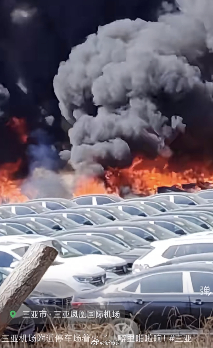 视频显示,一停车场内发生大火,现场停车几十辆,其中不少车辆被烧,并不时传出噼啪响声,现场更伴有大量浓烟。视频拍摄者称,事发地为三亚凤凰国际机场附近一停车场,被烧车辆为未上牌新车。在另一视频中可看到现场火势增大,浓烟较大,已有消防人员参与救援。评论区不少网友担心浓烟会对周围机场航班造成影响。