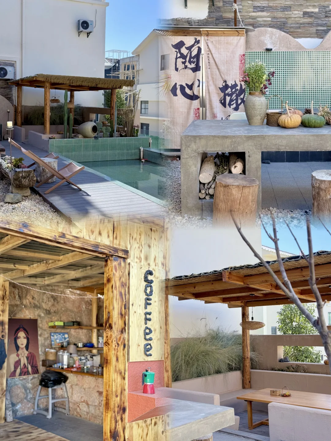 拖着行李箱走进小院就被治愈了~ 原木风的桌椅搭配绿植,阳光透过玻璃顶洒下来,连空气都带着木头的温润气息✨