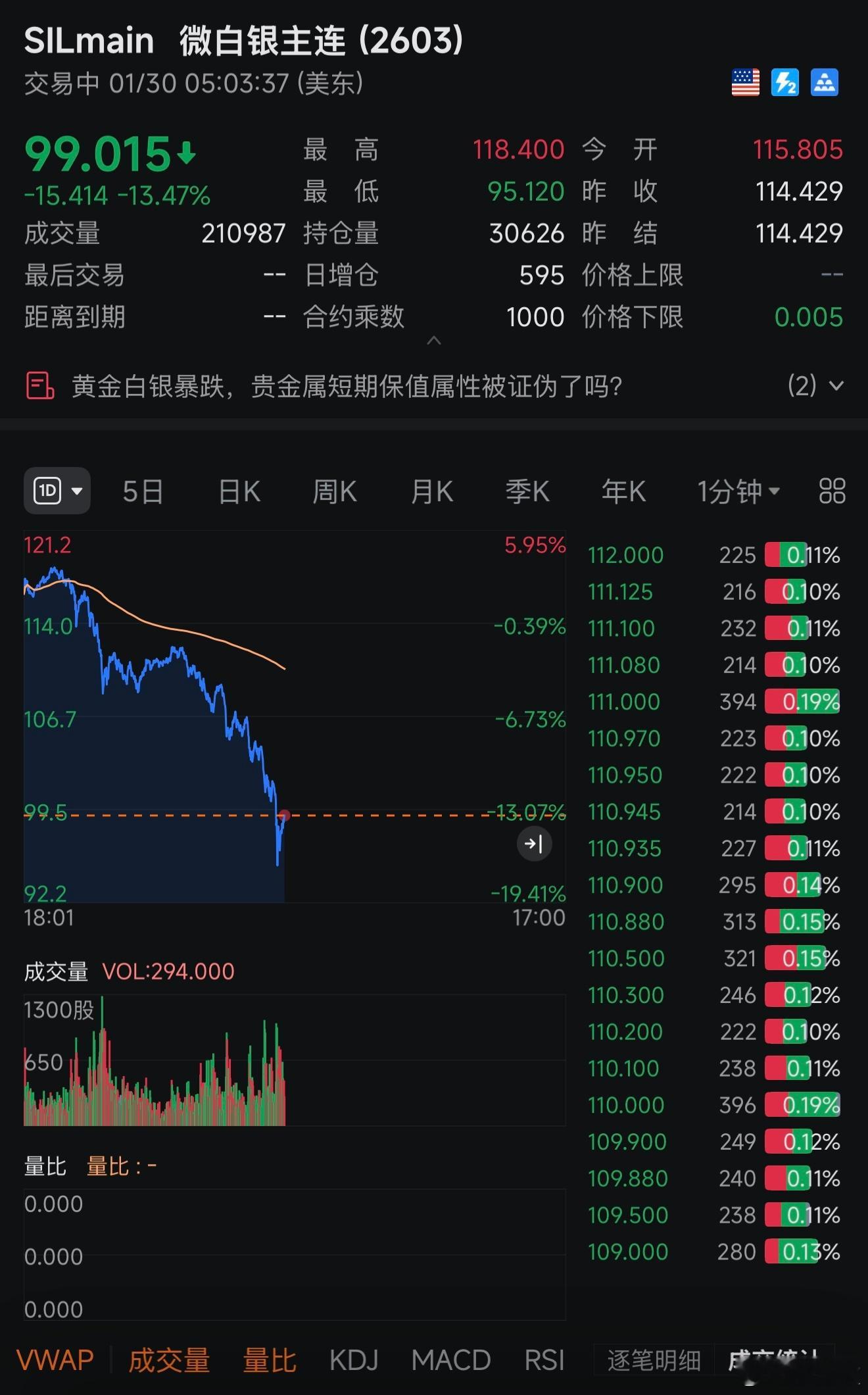 黄金白银今天跌惨了,不知道前几天入坑的心情如何?黄金跌近6%