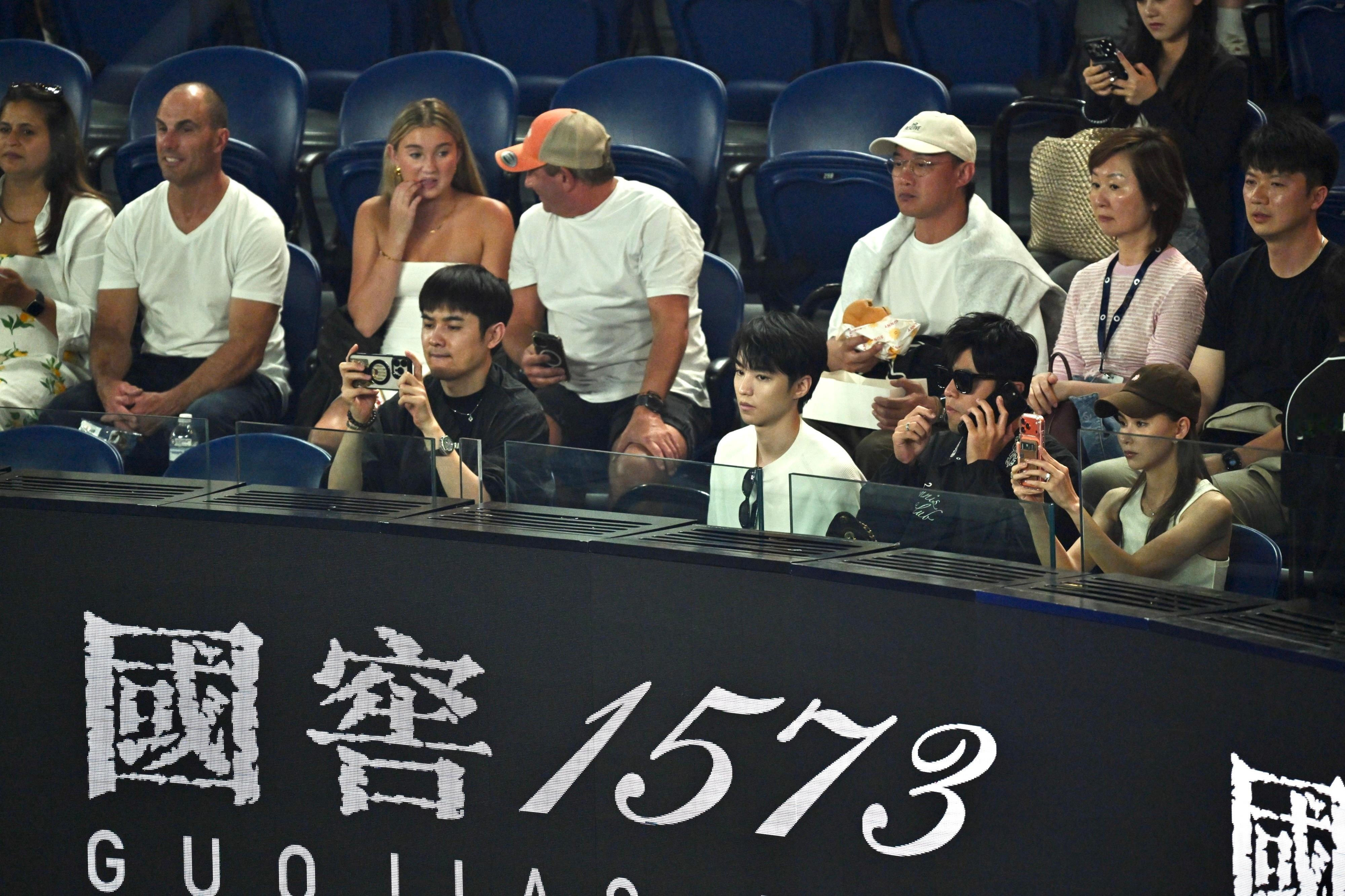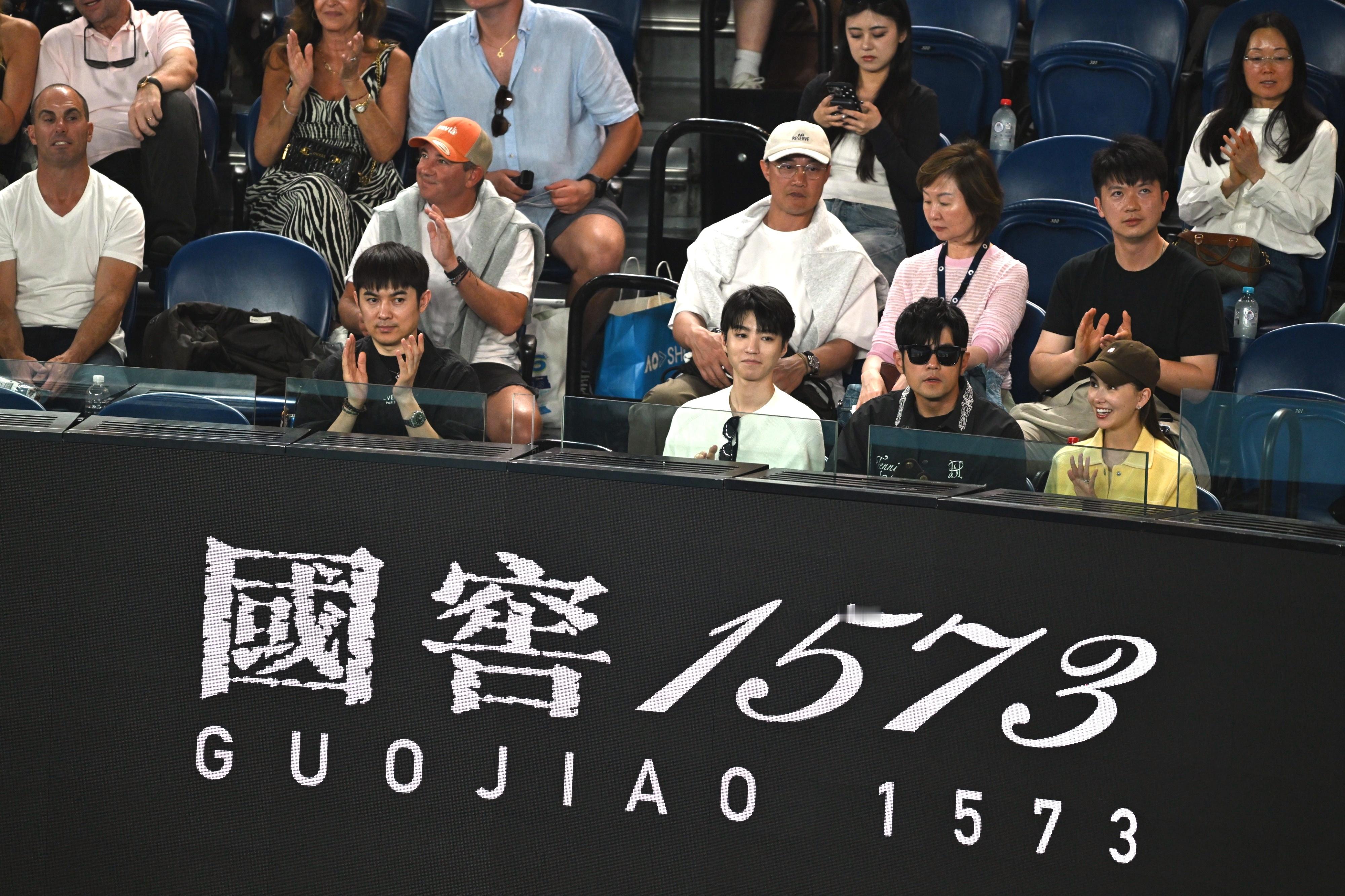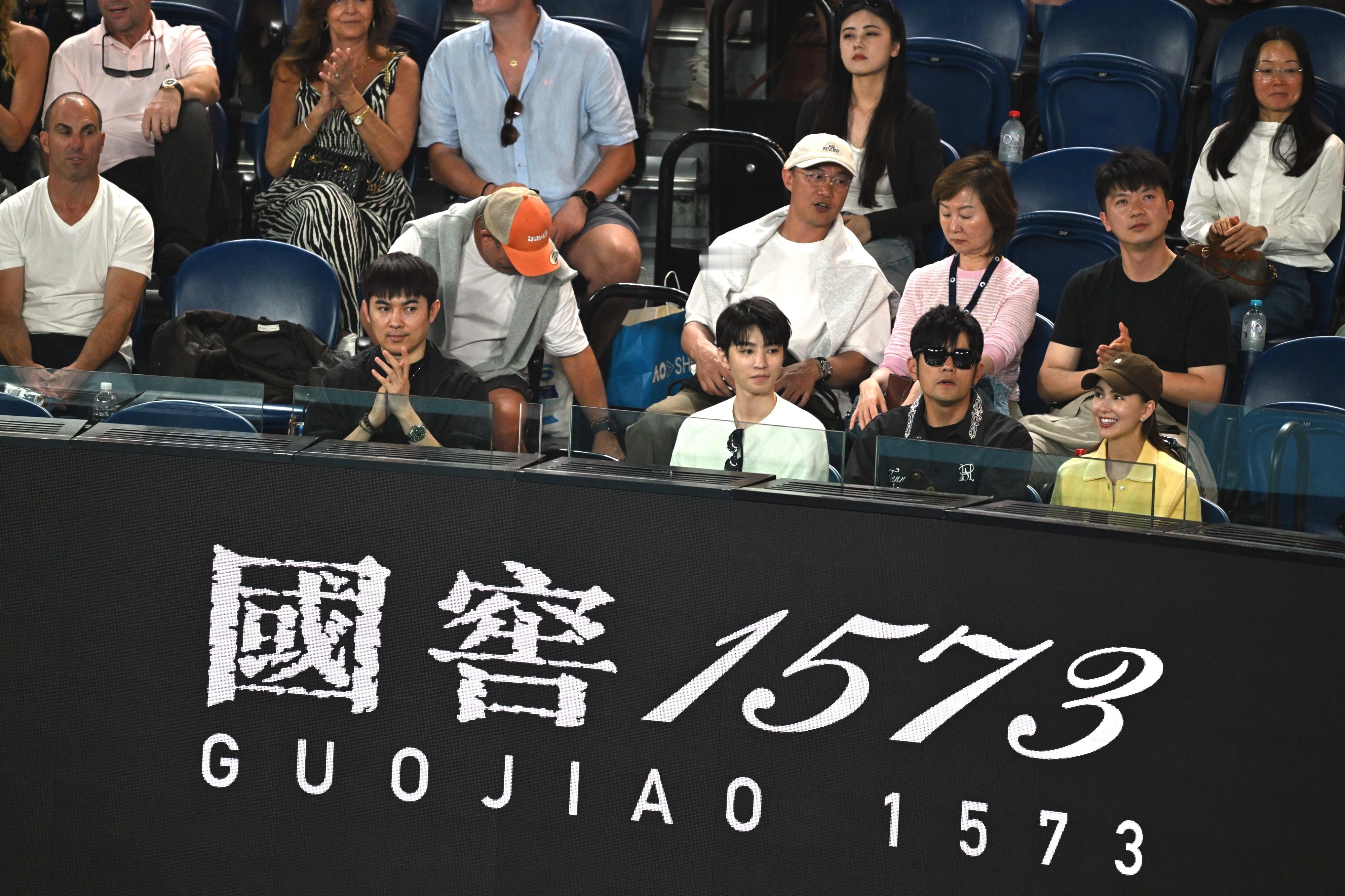 周杰伦、陈奕迅、王俊凯正在观战澳网男单半决赛德约vs辛纳,星光很足⭐⭐⭐