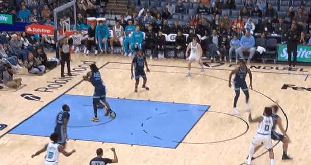 P9在比赛的第四节迪亚巴特弱侧底角接球,空位三分手起刀落——命中了NBA生涯中第2记&黄蜂生涯首记三分。