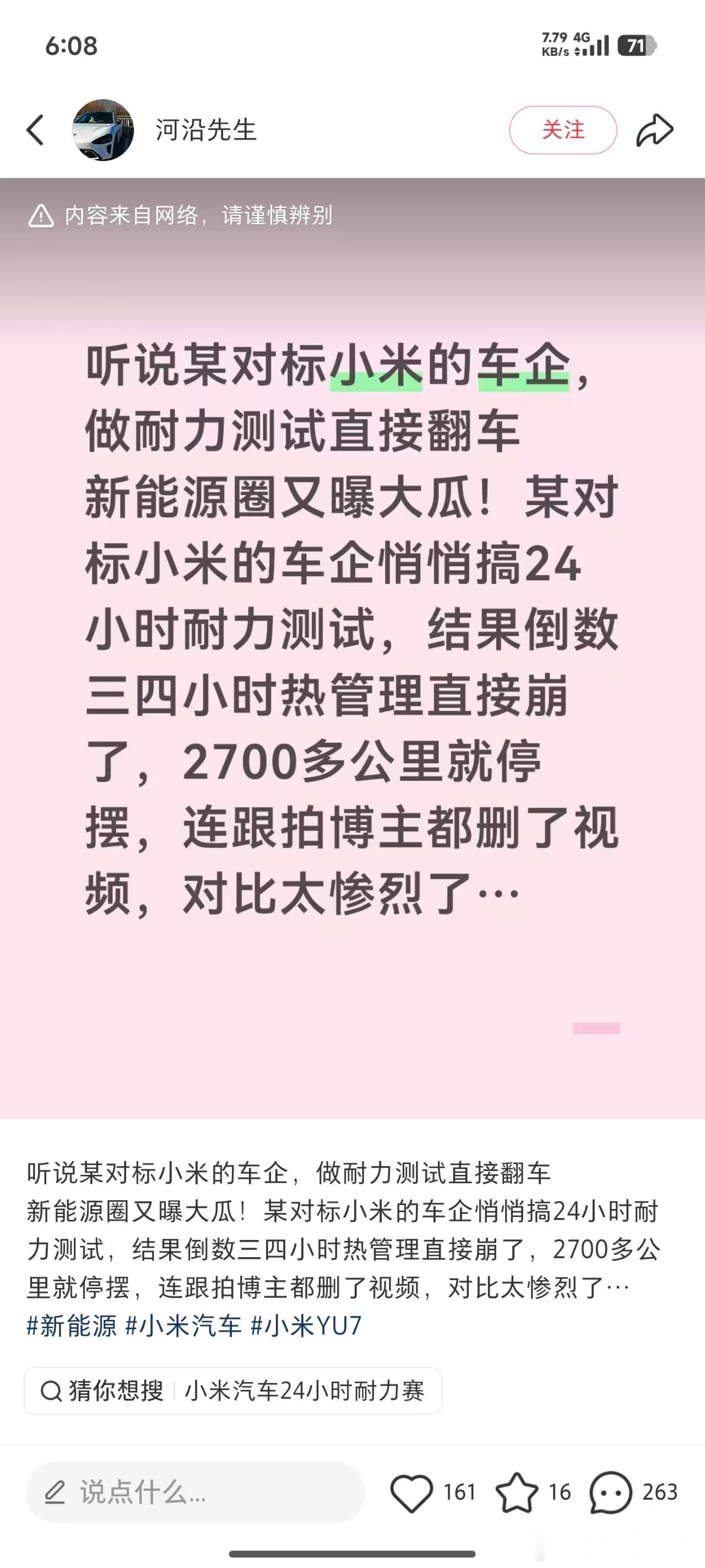 我是支持车企搞这个测试的,这种严苛的工况体现了车辆高负载下的稳定性。之前小米yu7和小鹏P7的24小时耐力赛也都取得了不错的成绩,时速全超过200+,再加上不停的5C超冲,相当于电池也在不停的超大功率放电,超大功率充电。