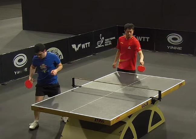 我去!世界冠军袁励岑居然被大肚腩打了7:1开局! 袁励岑不但是双打世界冠军, 单打也是全运会第四。 我以为他打多哈支线赛是屈才了, 应该是满级大佬进了新手村的感觉, 可现实呢? 袁励岑被马其他的一个大肚腩打了7:1开局, 气死我了! 哈哈,这哥们突然断线了! 袁励岑连赢9球, 10:7拿到局点了。 然后袁励岑又断电了, 被对方追到9:10, 关键时刻,运气来了, 袁励岑擦网球, 11:9拿下。 总比分3:1赢了