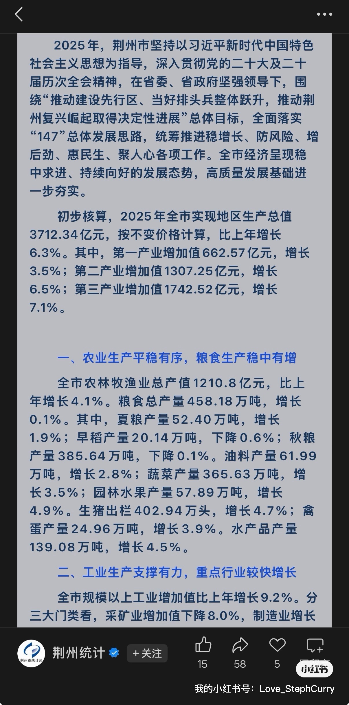 【宜昌2025年GDP测算值约6464.69亿元。增量:273.57亿,增速约4.4%。】