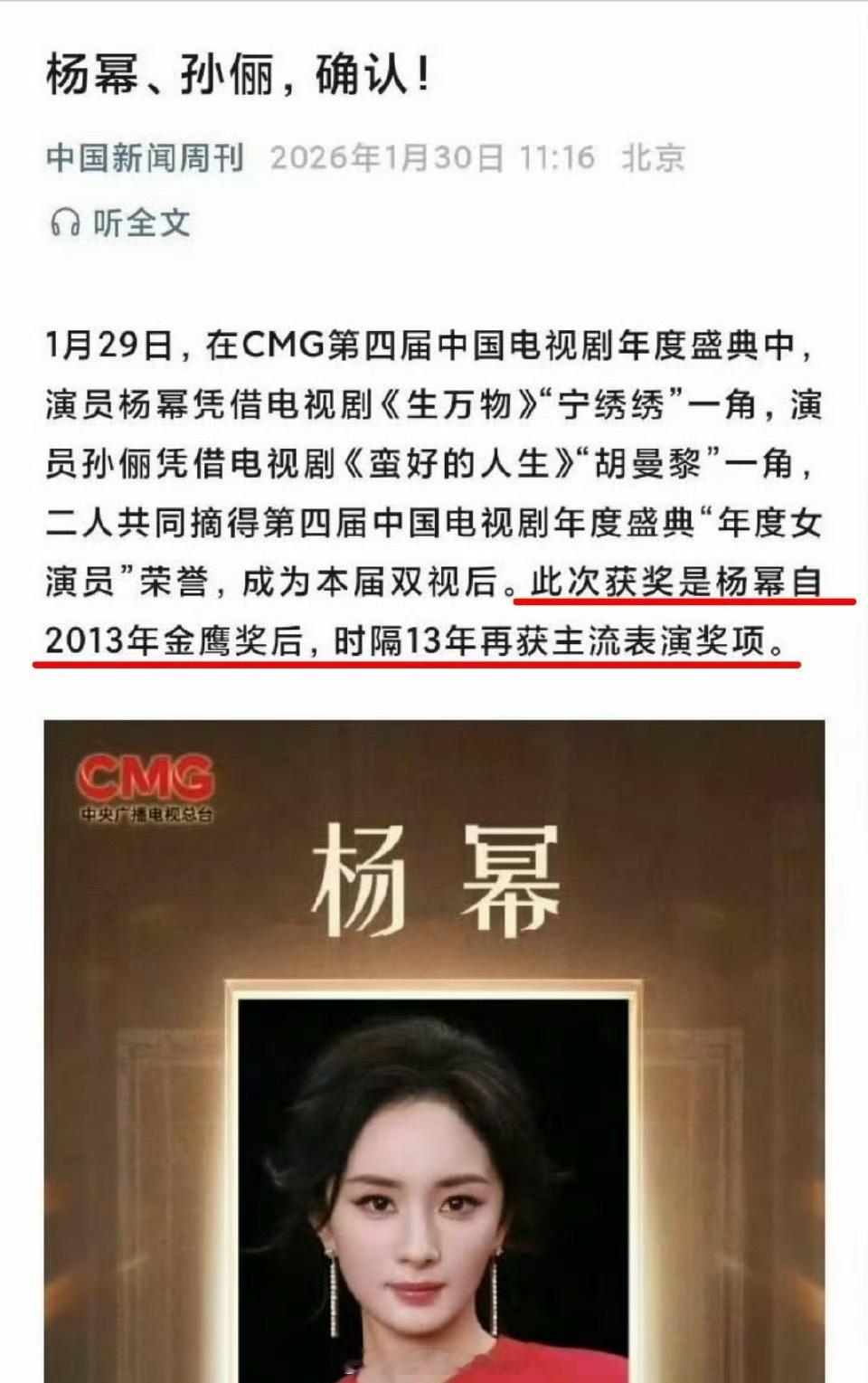 中国新闻周刊发文恭喜杨幂获得视后好棒的杨幂