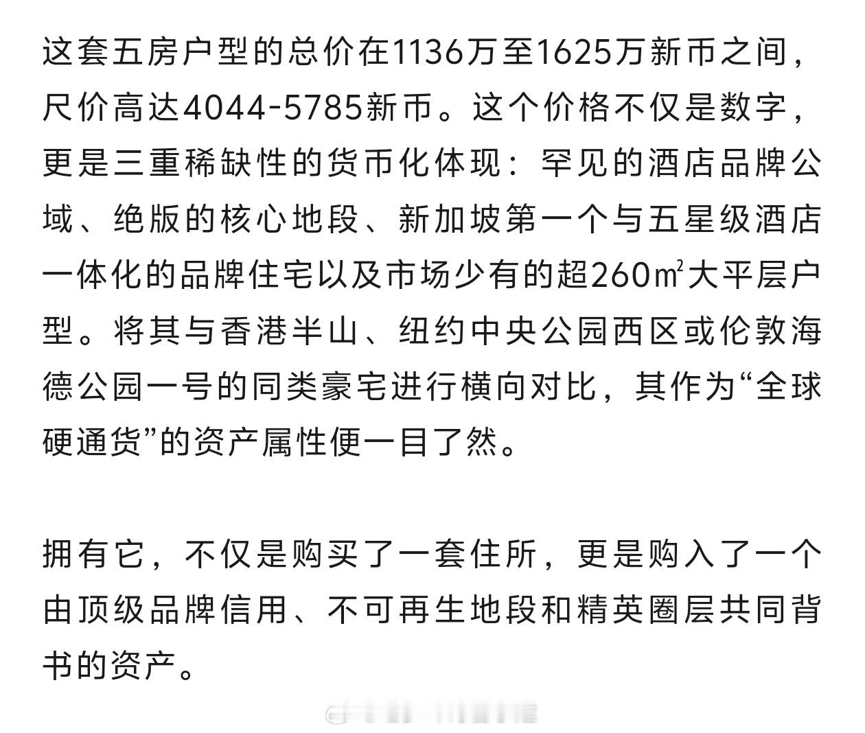 咱也是好起来了微信广告推一个新加坡滨海豪宅200多平价格1600多万新币汇率是1