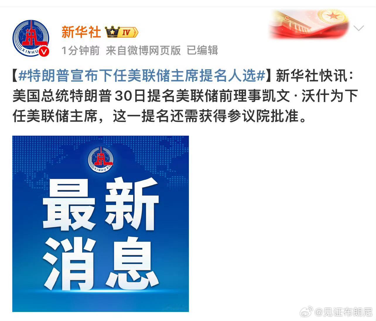 特朗普提名美联储新主席美联储