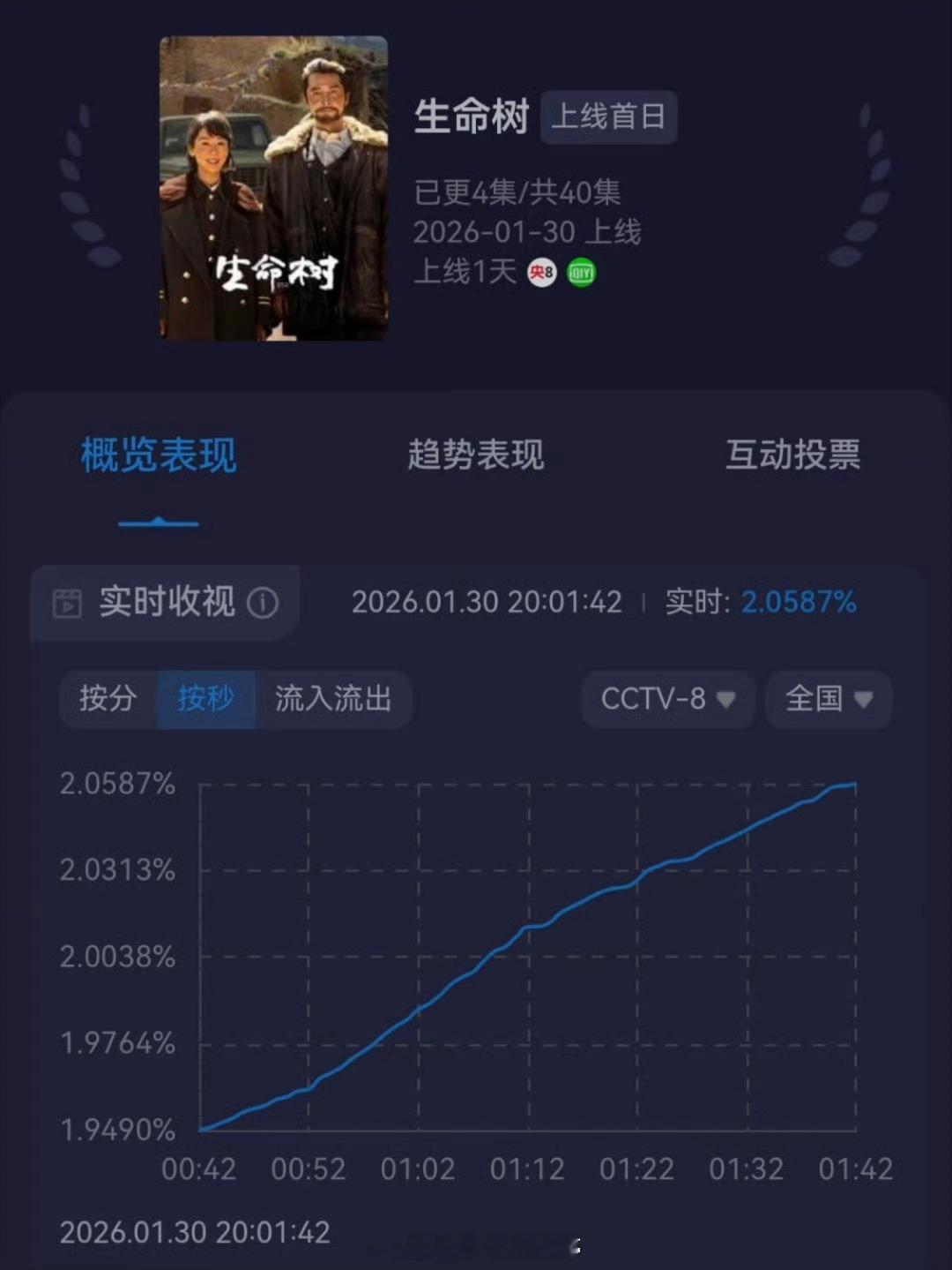 杨紫、胡歌《生命树》首播第一集酷云破二且登顶啦!好棒👍