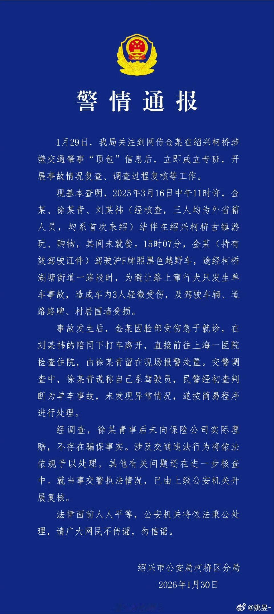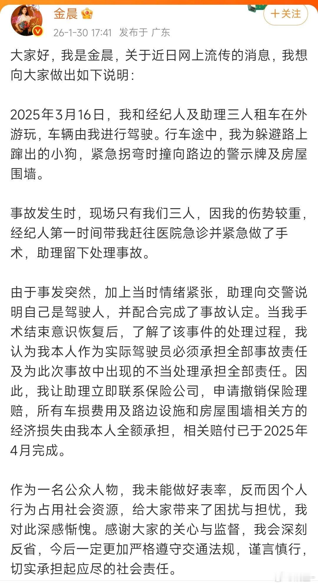 警方通报金晨事件官方通报来了,金晨本人驾驶车辆发生事故,事后前往医院治疗,但助理谎称自己是驾驶员,不存在骗保事实金晨道歉