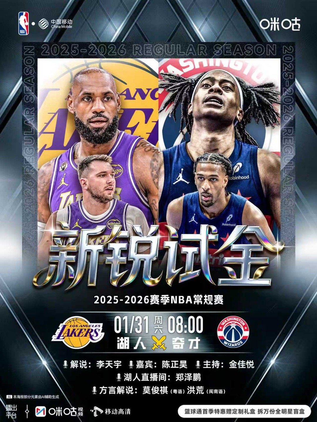 25-26赛季NBA常规赛⏰1月31日 8:00 周六🆚湖人vs奇才丨新锐试金📱#看NBA上咪咕#网页链接