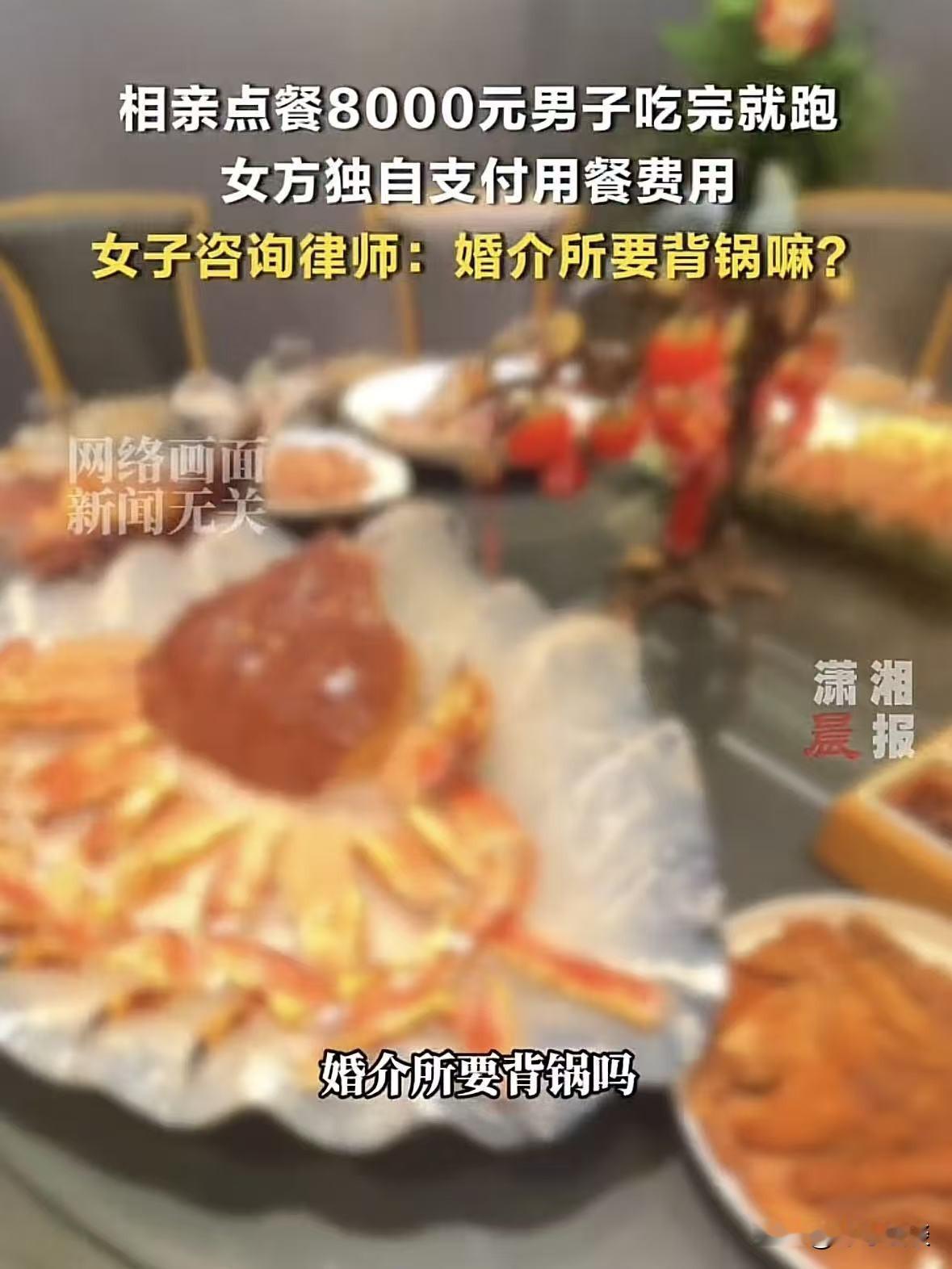 江苏,女子和婚介介绍的男子约会,两人吃饭时点了8000元的菜品和红酒,让她没想到的是,用餐结束后,男子以去卫生间为由离开,然后失联,无奈之下女子只能付了这笔高额餐费,事后女子气坏了,觉得跟婚介脱不了关系,没准他们是一伙的,后来他就此事咨询了律师,律师是这样说的! 苏女士到了谈婚论嫁的年纪,身边亲戚朋友催得紧,自己平时忙,也没时间认识新朋友。 思来想去,就找了家婚介,想着通过专业渠道,能靠谱点找到合适的另一半。 那边挺积极,没多久就给苏女士介绍了一位王先生,两人选了一家看起来还挺有档次的餐厅进行第一次见面。 第一眼印象就觉得王先生表现得彬彬有礼,说话也挺得体。 苏女士心里还暗自琢磨,婚介这次介绍的人好像还真不赖。 点餐的时候,王先生倒是挺大方,拿起菜单就开始点,点了不少硬菜,还有几瓶不便宜的酒水。 一顿饭吃下来,两人聊得也算融洽,苏女士觉得王先生花钱大方,看着也不像坏人。 可让他万万没想到的是,用餐结束后,王先生说稍等一下,去趟卫生间。 苏女士也没多想,结果这一等,就等了半个多小时,王先生迟迟没回来。 苏女士心里开始有点不安,拿出手机给王先生发微信、打电话,可都没人接,完全就是失联的状态。 苏女士坐在餐厅里,越来越觉得不对劲,这时候服务员过来说餐费还没结,总共是8000块钱。 听到这个数字,苏女士脑子嗡的一下,她怎么也没想到,这一顿饭竟然花了这么多钱。 而那个主动点餐的王先生,竟然借着去卫生间的名义溜了。 可她也没办法,最后只能硬着头皮,刷了自己的卡,付了这8000块钱的高额餐费。 事后她反应过来这会不会是婚介和这个王先生串通好的? 毕竟王先生是婚介介绍的,万一他们就是一伙的,自己不就成了被宰的羔羊吗? 越想越觉得可疑,苏女士气不打一处来,觉得这笔钱不能就这么白花了,婚介肯定脱不了干系。 为此,她还特意找了专业律师咨询,律师表示,通常婚介无义务承担会员相亲餐饮费,特殊情形除外: 1. 婚介与会员是合同关系,核心义务是核实基础信息、牵线促成见面,见面后消费既非法定义务也无合同约定,无需担责。 2. 8000元餐费是苏女士与王先生的私人消费,苏女士点餐未明确反对即默认,王先生主动点餐却逃单,是主要责任方,苏女士应向其追偿。 3. 仅两种情况婚介担补充责任,一是能证婚介与王先生串通一气。 二是婚介未履行基本身份审核义务,致苏女士无法向王先生追偿。 律师建议苏女士,先通过婚介索要王先生真实信息,婚介不配合可投诉。 也可报警核实情况对方,留存消费记录等证据,若仍找不到人,可凭王先生真实身份信息向法院起诉追偿。 苏女士的遭遇曝光后,网友们也炸开了锅,纷纷发表自己的看法。 有人说这王先生也太没品了,第一次见面就点这么贵的菜,最后还逃单,明显就是故意的,妥妥的骗吃骗喝。 苏女士也太倒霉了,遇到这种奇葩。 还有人认为婚介也有责任,介绍人之前好歹得好好审核一下,不能什么人都往外卖吧。 也有人吐槽:8000块钱的相亲饭也太夸张了,普通相亲谁会点这么贵的? 苏女士当时肯定虚荣心作祟了,就应该及时制止,也不至于最后自己买单。 不得不说,吃一堑长一智,今后遇到这类事一定长个心眼。 对此,你怎么看这件事呢? @静心法谈 学法辨是非,慬法不吃亏。