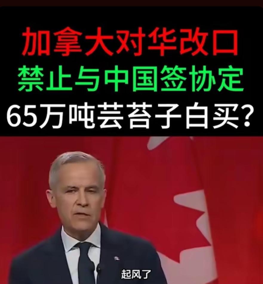 又翻脸了?加拿大对华改口,禁止与中国签协定,65万吨芸苔子白买? 在卡尼成功访华后,中加经贸关系出现了相当程度的好转,有消息人士就透露,中国已经向加拿大下了65万吨的芸苔子,也就是油菜籽订单。 卡尼这波改口可不是拍脑袋决定的,背后藏着USMCA协定里32.10条款的硬约束。这就是被全球诟病的“毒丸条款”,明确规定加拿大要是和非市场经济国家签自贸协定,美国和墨西哥有权六个月后退出协定,还得提前三个月通知、签署前30天给对方审查全文。 美国2017年就把中国归为“非市场经济国家”,这条款简直就是专门给加拿大量身定做的紧箍咒。加拿大根本不敢越雷池,毕竟它的经济命脉还攥在美国手里。 2025年数据显示,加拿大对美出口占比还有62.3%,虽然是1994年以来最低,但依然是绝对主导。汽车产业80%的零部件和整车都销往美国,直接关联200万个就业岗位,原油出口90%、天然气99%都流向美国,这些领域根本找不到替代市场。 卡尼敢访华谈合作,纯粹是国内农业快扛不住了。以前中国96%的油菜籽都从加拿大进口,现在早变天了。2025年1-5月,中国从俄罗斯进口油菜籽同比涨了112.8%,阿联酋也涨了37.5%,澳大利亚还拿下了20万吨订单。 加拿大西部萨斯喀彻温省是油菜籽主产区,当地农户的库存压力早就堆到了嗓子眼。2025年当地农业调查显示,89%的居民对农业有正面看法,但背后是农户们眼睁睁看着市场被抢的焦虑,农业协会天天给政府递诉求,逼着找中国稳住订单。 65万吨订单对他们来说就是续命钱,可卡尼刚回国,美国的关税大棒就挥过来了。2025年特朗普政府已经对加拿大钢铝加征25%-35%关税,还威胁要对汽车加征25%关税,这些威胁直接导致加拿大2025年二季度GDP按年率下滑1.6%。 一边是农业选票和救命订单,一边是占6成以上出口的美国市场,加拿大只能选后者。把“自贸协定”改口成“行业贸易便利化安排”,就是怕触发“毒丸条款”,被美国踢出北美贸易圈。 说白了这就是美国的霸凌主义,逼着加拿大在中美之间站队,完全违背了WTO非歧视原则。加拿大看似两边都想顾,实则把自己架得很难看。 中国根本不怕它反悔,早就留足了后手。国内推行的“大豆和油料产能提升工程”见效了,油菜种植面积已经到1.2亿亩,年产量能到1800万吨,进口总量从年均451万吨降到283万吨,自给率越来越高。 就算加拿大敢撕毁订单,俄罗斯的优质油菜籽、澳大利亚的“双低”油菜籽都能补上来,根本不愁没替代来源。而且油菜籽放久了会变质,加拿大农户的库存根本耗不起,真违约损失最大的是他们自己。 加拿大这种被美国掐住经济命门的状态,根本没资格谈平等合作。嘴上说要发展对华经贸,行动上却处处看美国脸色,连谈判都要先报备,这哪有主权国家的样子。 中国向来诚心做贸易,但合作得讲诚信、守规矩。加拿大要是一直这么反复无常,迟早会彻底失去中国市场的信任。 各位读者你们怎么看?欢迎在评论区讨论。