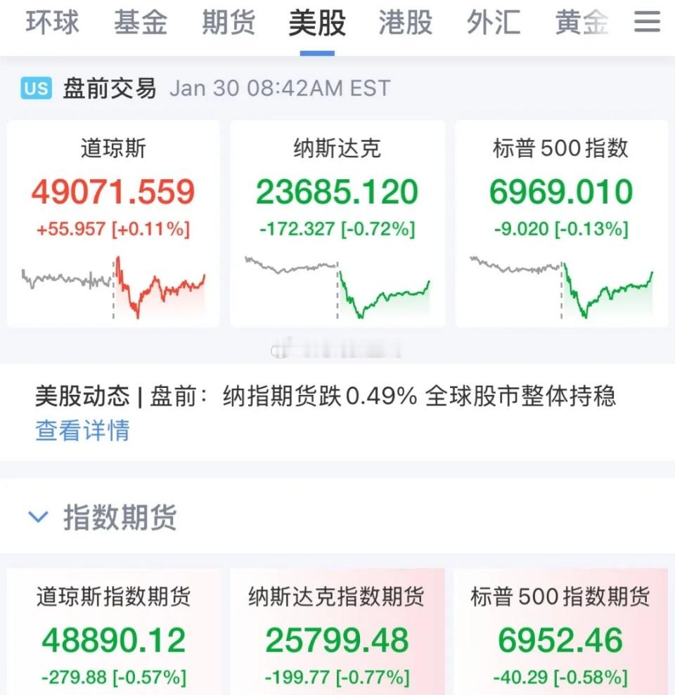 美股盘前三大期货指数全线跌幅扩大,道指期货跌幅0.59%,纳指期货跌幅0.78%,标普500指数跌幅0.6%,