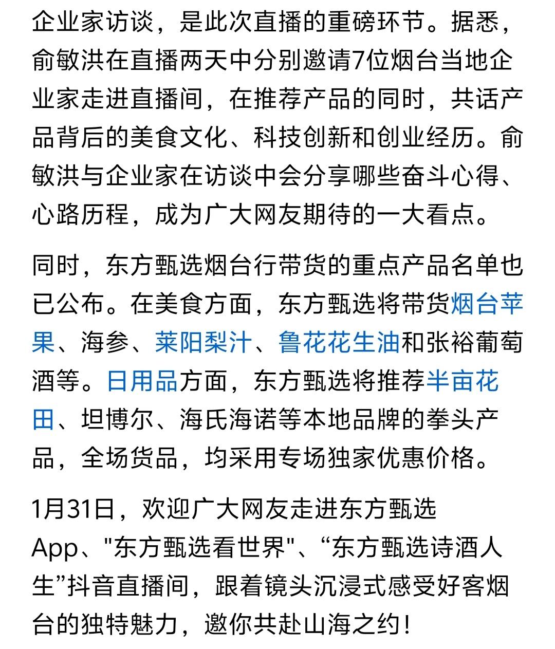 烟台这一次能够邀请到东方甄选来烟台直播带货这是很好的,应该持续下去! 过去一两年,我们烟台经常和央视合作,虽然说央视影响力还在,但是如今看电视的越来越少,而且央视能够做的只能是宣传烟台的城市形象! 但是烟台是工业城市也是农副产品大市,城市宣传很重要,但是产品消出去更重要,因为只有更多烟台产品销出去,我们本土企业才能进一步做大做强,才能给烟台带来更多的税收甚至是就业岗位! 所以以后我们只能可以经常组织烟台企业选择优秀网络主播进行集中带货,在带货的同时也通过互联网宣传烟台,是“一举两得”的事情!
