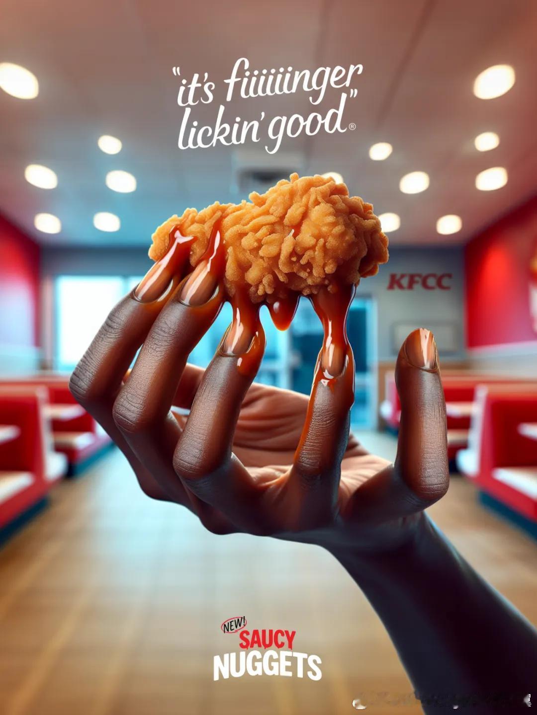 其实我觉得还好吧,至少比2024年的肯德基AI多指海报要好。