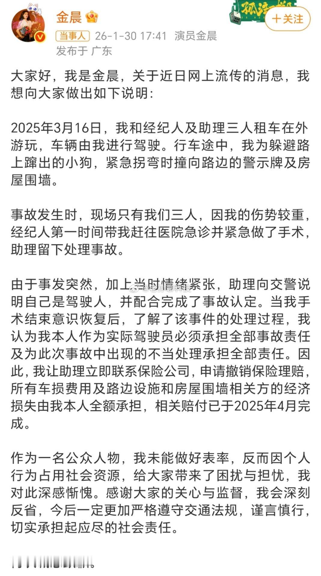 首先将事故原因归咎于流浪狗,既淡化了事件原因,又凸显金晨本人“爱心”,赢得公众好感
