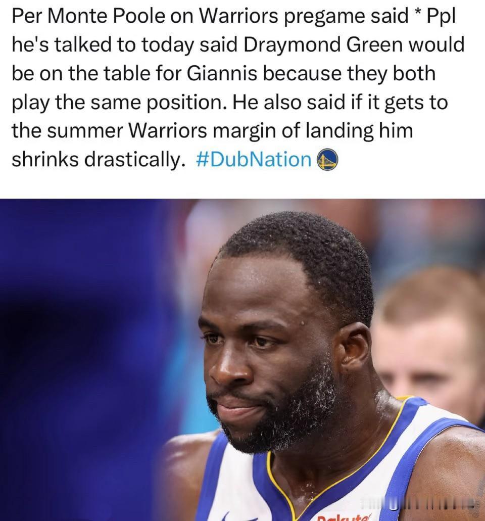 字母哥若来,追梦将步克莱后尘,也得走,终老勇士成空? 网传勇士追逐字母哥两队管理层已进入实质性接触阶段,勇士大概率以巴特勒(或是库明加)、追梦、波捷姆斯基+4个选秀权作为交易主体迎来字母哥。 追梦成为筹码的原因之一是和字母哥重位,都打4号位,又同样拥有外围投射不稳定的弊端,如果两人同时在场,很难拉开球队的进攻空间。 若追梦真走,勇士8年夺4冠的王朝班底最后只剩库里最后1人。