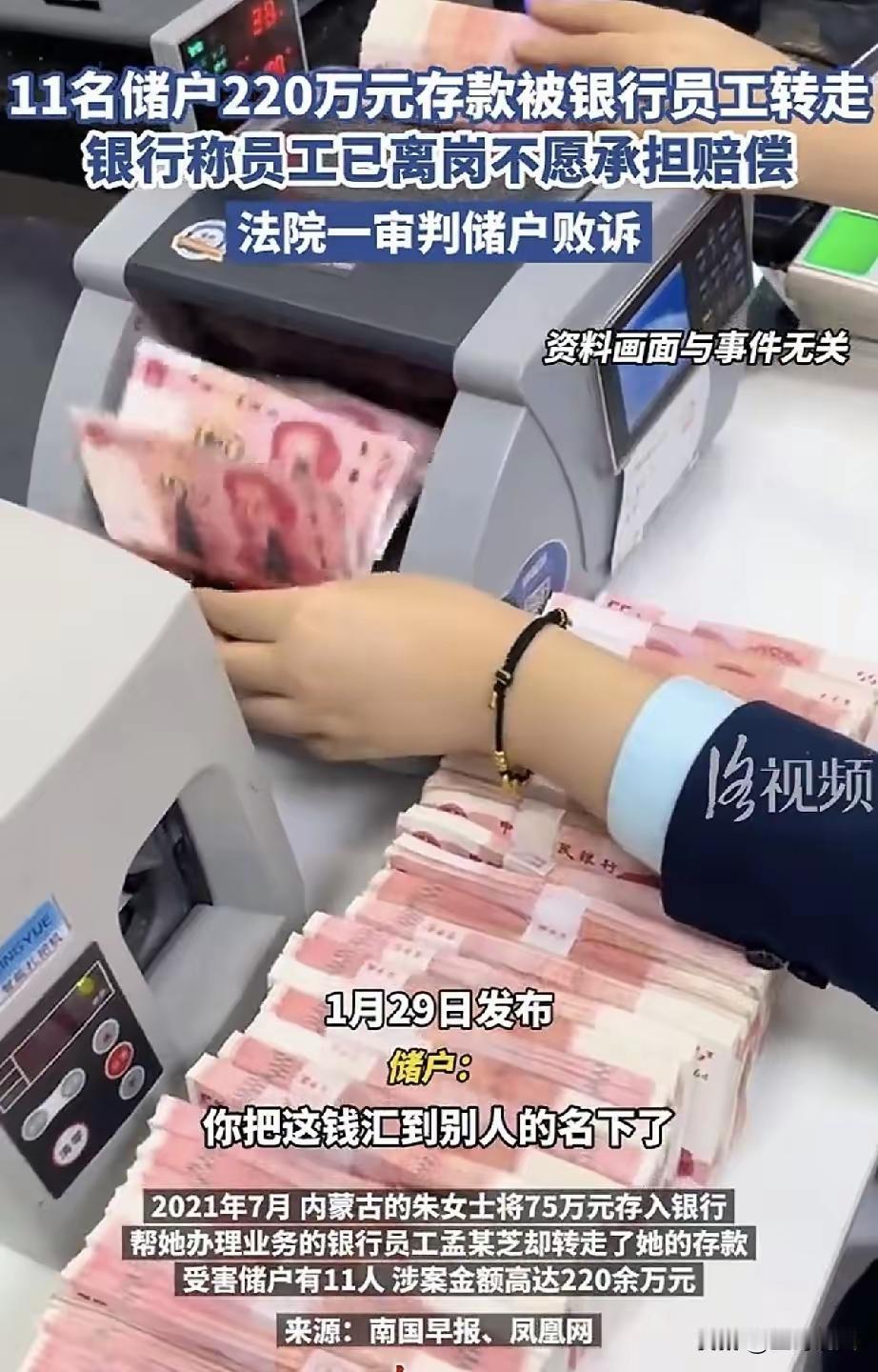 都说把钱存银行是最稳当的,可内蒙这位朱女士,却被这个“常识”狠狠坑了一把。 她省吃俭用大半辈子,攒下75万血汗钱,图个安心,全存进了银行。在她看来,穿着制服、坐在银行柜台里的工作人员,就代表着国家的信用和绝对的安全。 手续办完,她揣着存款凭证放心走了。可她万万没想到,自己前脚刚离开,后脚她那75万,就在柜台里,被那个刚刚热情接待她的工作人员孟某芝,悄无声息地转走了。钱被拿去填了别人的民间借贷窟窿,甚至还用来支付其他受害者的“利息”,搞起了庞氏骗局。 这一切,朱女士毫不知情。直到东窗事发,孟某芝因诈骗罪被判了12年,朱女士一查账户,才发现自己一辈子的积蓄,余额赫然是“0”。 天塌了。她去找银行讨说法,银行却两手一摊:钱是员工个人转走的,她已经离岗(被抓)了,这是她的个人犯罪行为,跟银行没关系。 好一个个人行为!朱女士和其余10位总共被骗220万的储户,彻底懵了。钱是在银行柜台存的,手续是穿着工服的员工办的,操作过程我们储户完全遵循指引。现在出了事,银行一句“员工个人犯罪”就想撇清所有责任? 这道理,放在哪都说不通。储户是因为信任“银行”这个机构,才把身家性命托付进去,而不是信任某个叫“孟某芝”的个人。员工利用银行的场所、职务的便利、储户对银行的信任实施犯罪,这恰恰暴露出银行在内部管理、风险监控上的巨大漏洞。出事了就把员工推出去当“临时工”顶罪,那银行自身的责任和信用,又值几个钱? 更让人心寒的是,一审法院竟然判朱女士败诉。理由是倾向于认为员工通过欺瞒手段获取了密码,属于个人犯罪。这个判决,看似逻辑清晰,实则冰冷地回避了核心矛盾:在银行柜台这个特殊场景下,储户的“合理信任”和银行的“绝对责任”边界在哪里? 如果连在银行柜台、面对银行员工办理正规业务,都无法保证资金安全,都需要储户自身具备火眼金睛去鉴别员工是不是在犯罪,那我们把钱存进银行的意义是什么?难道以后存钱,还得自带律师和审计,先对柜员做一遍背景调查? 这起案件最可怕的启示,不是出了一个坏员工,而是整个系统在事后,选择性地“切割”了。银行切割了犯罪的员工,试图切割自身的监管责任;一审判决则切割了“工作场所”与“个人行为”的必然联系。这种切割,本质是将系统性风险,转嫁给了最无助的个体储户。员工坐牢,是罪有应得;但银行管理失职的代价,难道仅仅是一句“已离岗”吗?如果银行可以因“员工个人犯罪”而免于赔付,那无异于宣告:银行柜台不再是无风险的安全区,而是储户需要自己承担“被员工诈骗”风险的赌场。这不止是朱女士75万的问题,这是动摇了储蓄信用体系的根基。二审若不能拨乱反正,那么每个人走进银行时,都将面临一个荒谬而残酷的新问题:你信任的,究竟是那栋大楼,还是里面那个可能正盯着你存款的、未经有效监督的“人”?存款感悟