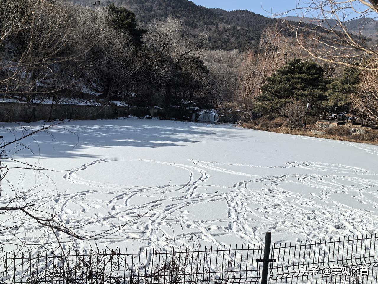 植物园内樱桃沟汇水处,结冰—降雪—足迹