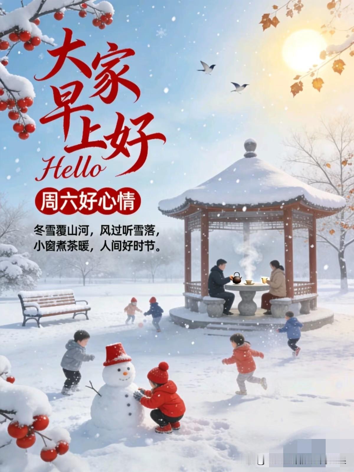 早安呀,周六快乐!愿你有个轻松惬意的一天,吃好喝好休息好✨ 早安,周六啦!抛开烦恼,享受属于自己的悠闲时光,一切都甜滋滋的~ 周六早安,愿你被温柔以待,日子简单,快乐满溢~ 新的周六,新的美好,早安!愿你度过轻松又舒心的一天~ 周六早安呀,愿阳光温暖你,美好围绕你,轻松度过这一天~ 周六 早安 早安今天