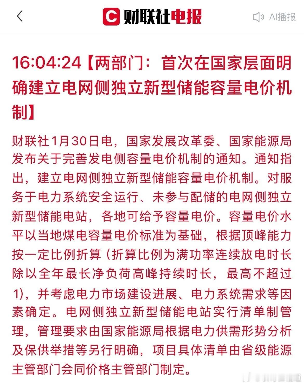 2.电网侧独立储能历史首次! 国家明确电网侧独立储能可以享受容量电价。这意味着大型储能电站从此有了清晰的商业模式,不再是“赔本赚吆喝”,行业投资将全面提速。