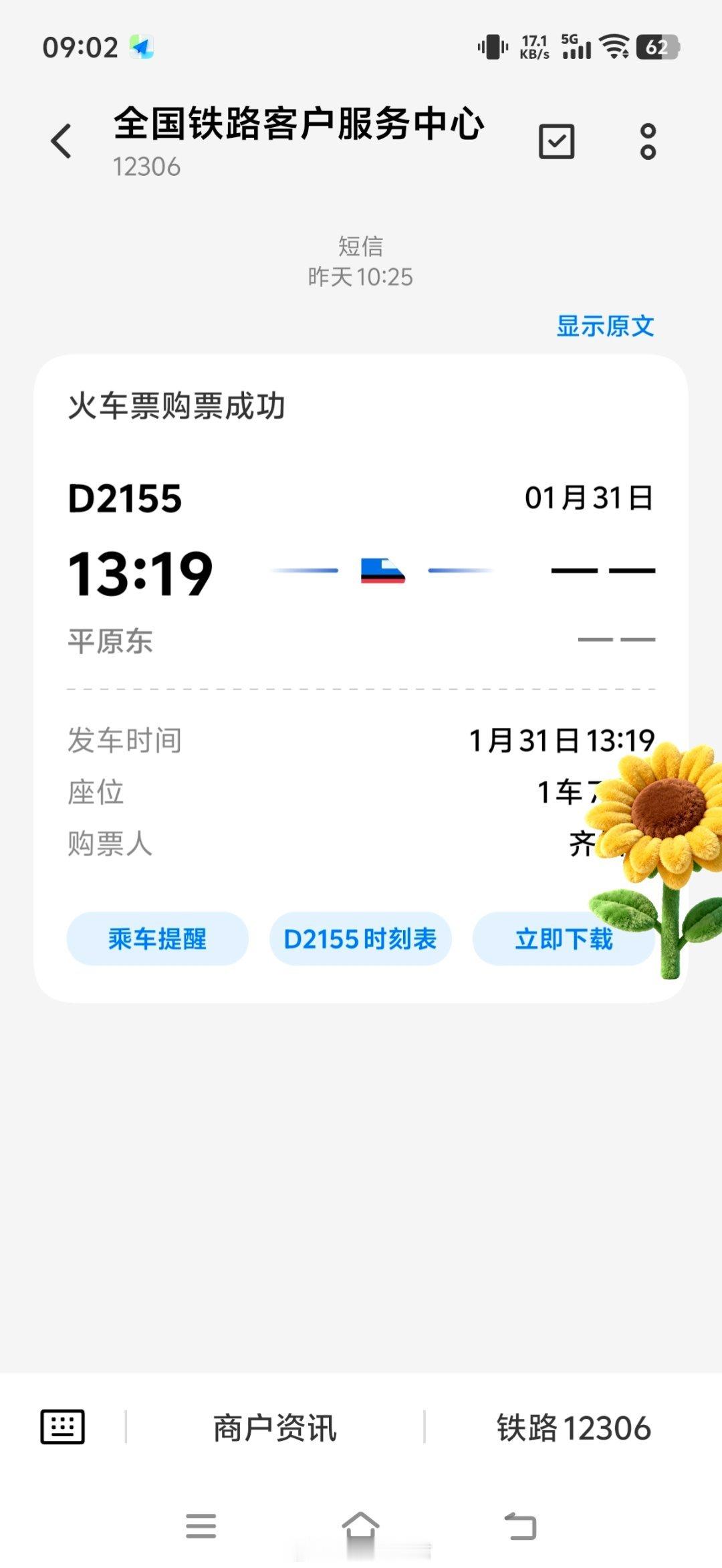 尊敬的齐先生你要准时乘坐火车啊,别到时候没收到火车票信息怪我要,咱俩可素不相识,估计你买票的时候或者注册的时候不小心写了我的手机号~春节期间通行费减免政策公布