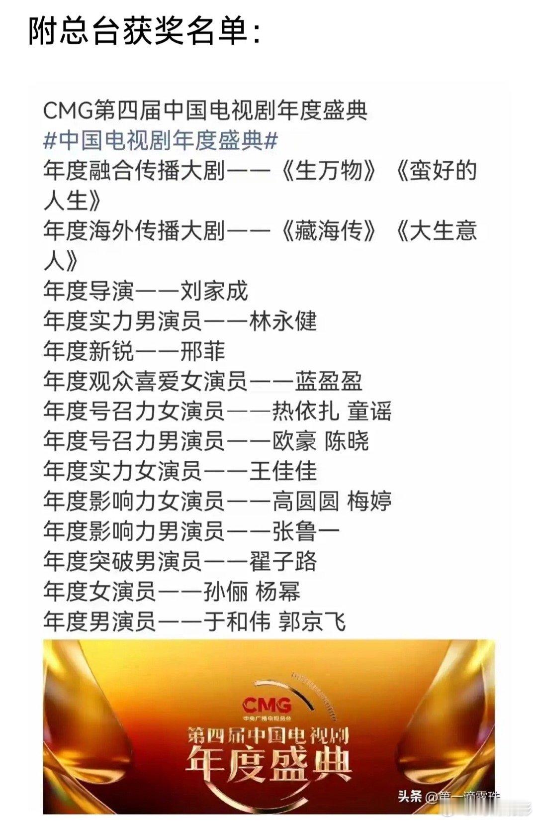 今年的国剧盛典,《沉默的荣耀》有点冷场了。《生万物》成了大赢家。有五位演员获得了各种头衔的年度演员。而人们看好叫座,感动得泪花盈盈的《沉默的荣耀》就显得有点冷场了。就于和伟一人揽得了一个年度男演员大奖。虽说这一个奖项的份量相较于其它头衍的是最重的。但《生万物》的杨幂也得了个相同的年度女演员大奖。这样来看《沉默的荣耀》就有点亏了。来看下《生万物》的获奖的有哪几位吧。年度实力男演员林永健,年度喜爱演员蓝盈盈,年度新锐演员邢菲,年度号召力演员欧豪。再加上杨幂共有五位演员获奖。而大家非常看好的《沉然的荣耀》里的吴越和魏晨却榜上无名。因为他们俩诠绎的朱枫和聂曦太过完美、太深入人心了。这么好的演员都没得到肯定,难免有点唏嘘不已。大家认为呢!
