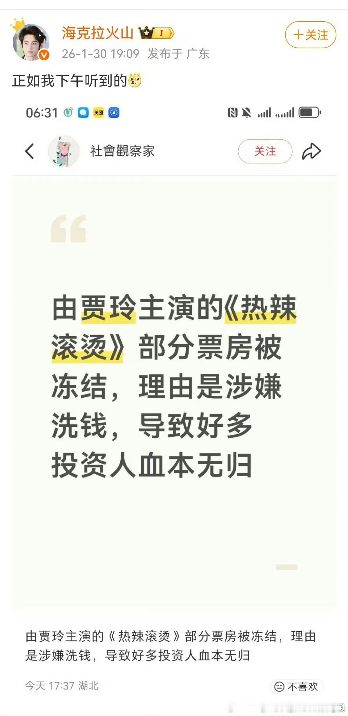 然后就有其他网友在视频评论区爆料说,《热辣滚烫》部分票房资金被冻结了,涉嫌xq,还说圈内人都知道……这个tz人还说,现在出品公司又在卖新电影的出品份额,其中包括春节档新电影陈丽君李连杰谢霆锋等人主演的《镖人》……