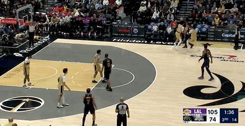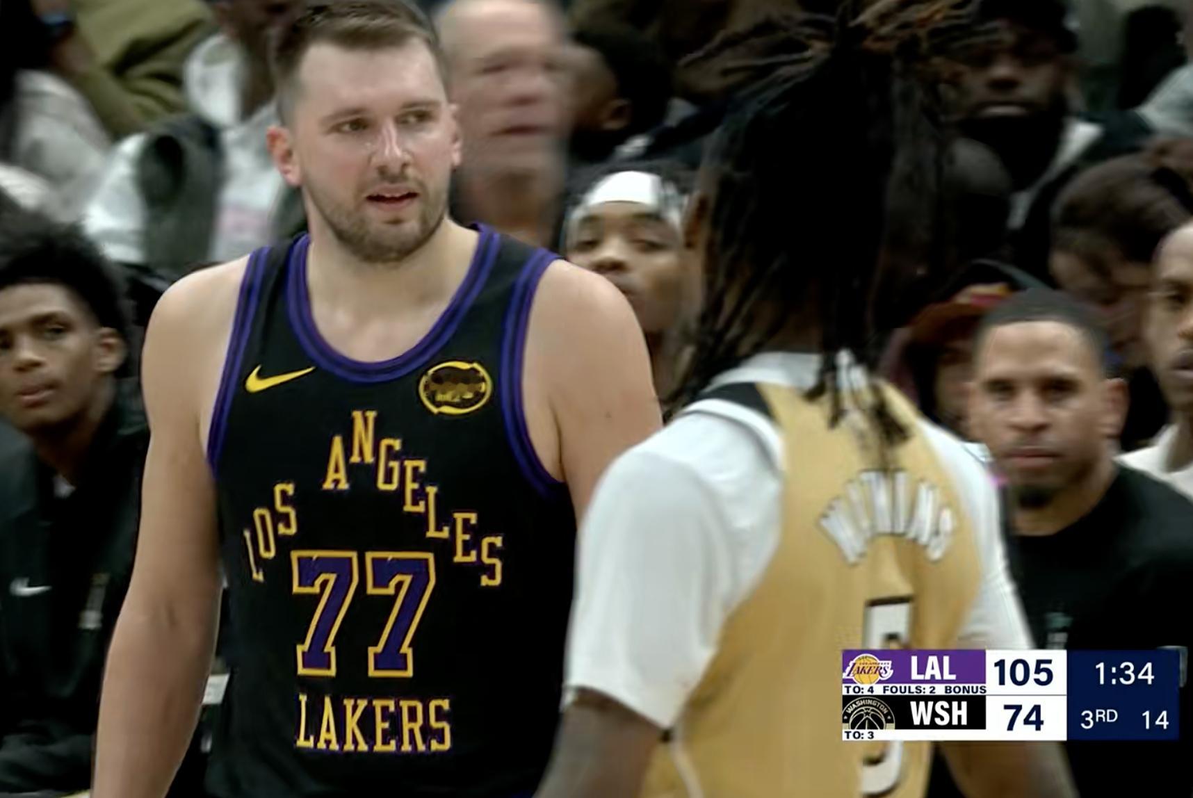 湖人领先30多分,奇才包夹东契奇,东契奇有点生气了