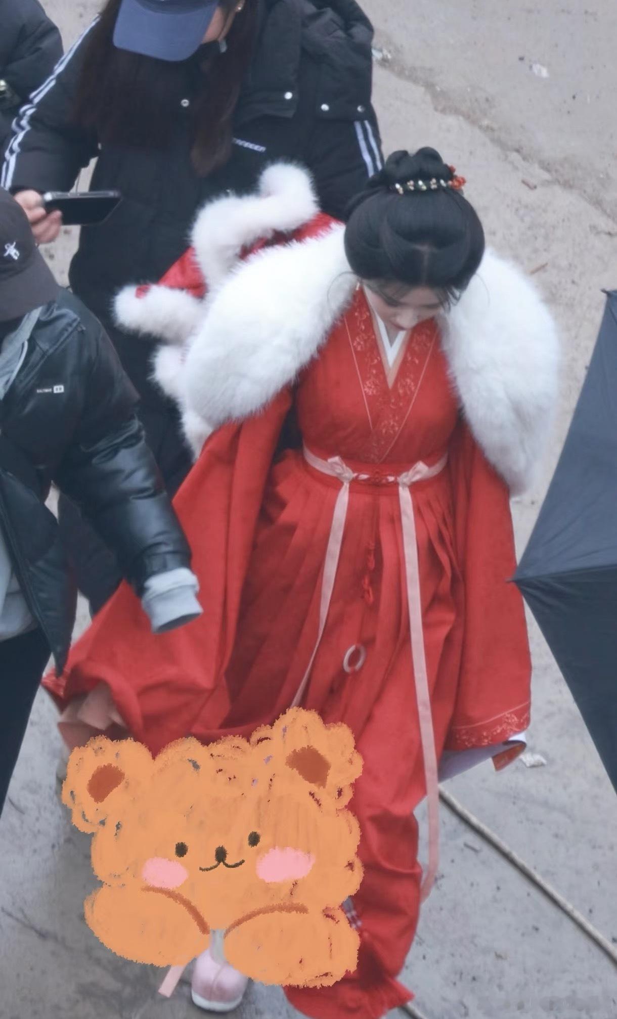 张天爱跟素人合影,胯真的好宽,大宅院似的