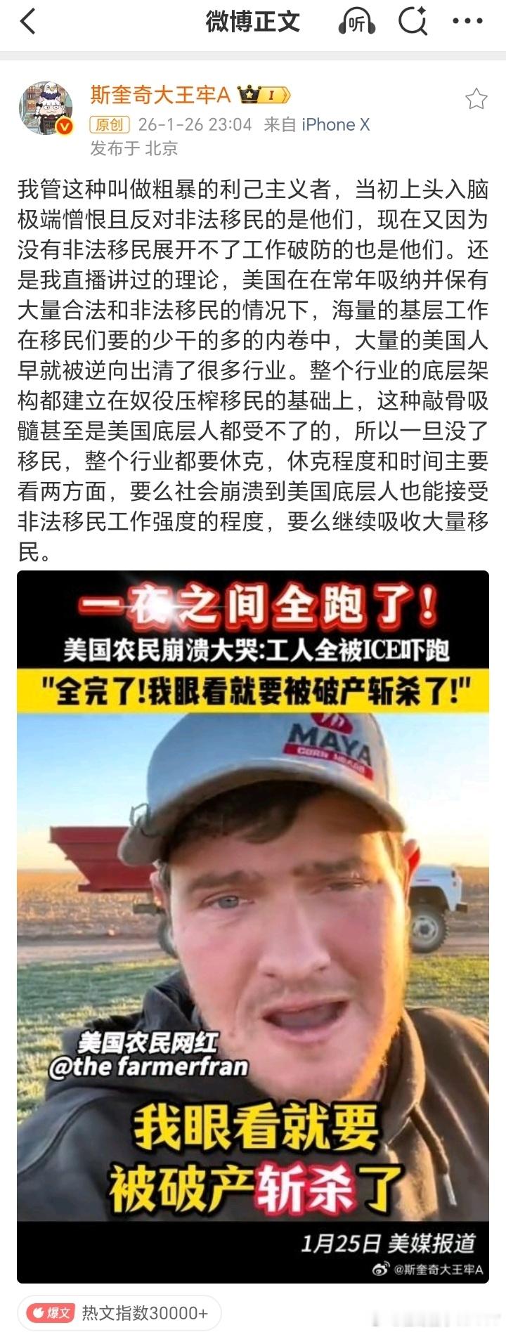 当初上头入脑极端憎恨且反对非法移民的是他们,现在又因为没有非法移民展开不了工作破防的也是他们。