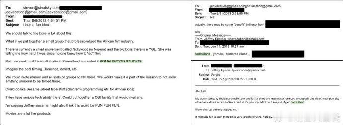 索马里兰也出现在爱泼斯坦文件里 最新公开的邮件显示,杰弗里·爱泼斯坦及其网络早在2012–2018年就多次谈论索马里兰,远早于该地区当前的“地缘政治热度”。 水:2012年,爱泼斯坦计划在港口城市柏培拉开设水公司,称当地“蕴藏巨大且清洁的地下淡水”,可直供沙特,项目“快速、暴利、物流简单”,水源已提前勘探完毕。 影视:另一封邮件提出打造“索马里坞”(SOMALIWOOD STUDIOS),把索马里兰建成影视与媒体枢纽。 石油:2013年邮件索要5000万美元,用于勘探约3万平方公里的三个大型石油区块,前景被描述为“良好”,并提议与欧洲联系人协调。 海湾资本:2018年通信提及迪拜某人工岛开发商“已在索马里兰做生意”,爱泼斯坦负责牵线。 综合来看,这些内部讨论把索马里兰定位为西方与海湾精英眼中的“资源-物流-文化-地缘”战略资产,时间线远早于今日的以色列-海湾-红海-非洲之角新一轮外交承认与动荡。