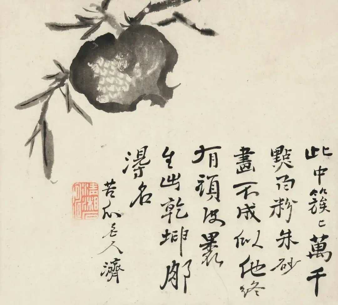 石涛《石榴图》,立轴 水墨纸本 21.5×23.5 cm。题识:此中簇簇万千点,白粉朱砂画不成。似他终有顽皮裹,生出乾坤那得名。苦瓜老人济。钤印:清湘石涛。这就是中国风 遇见艺术