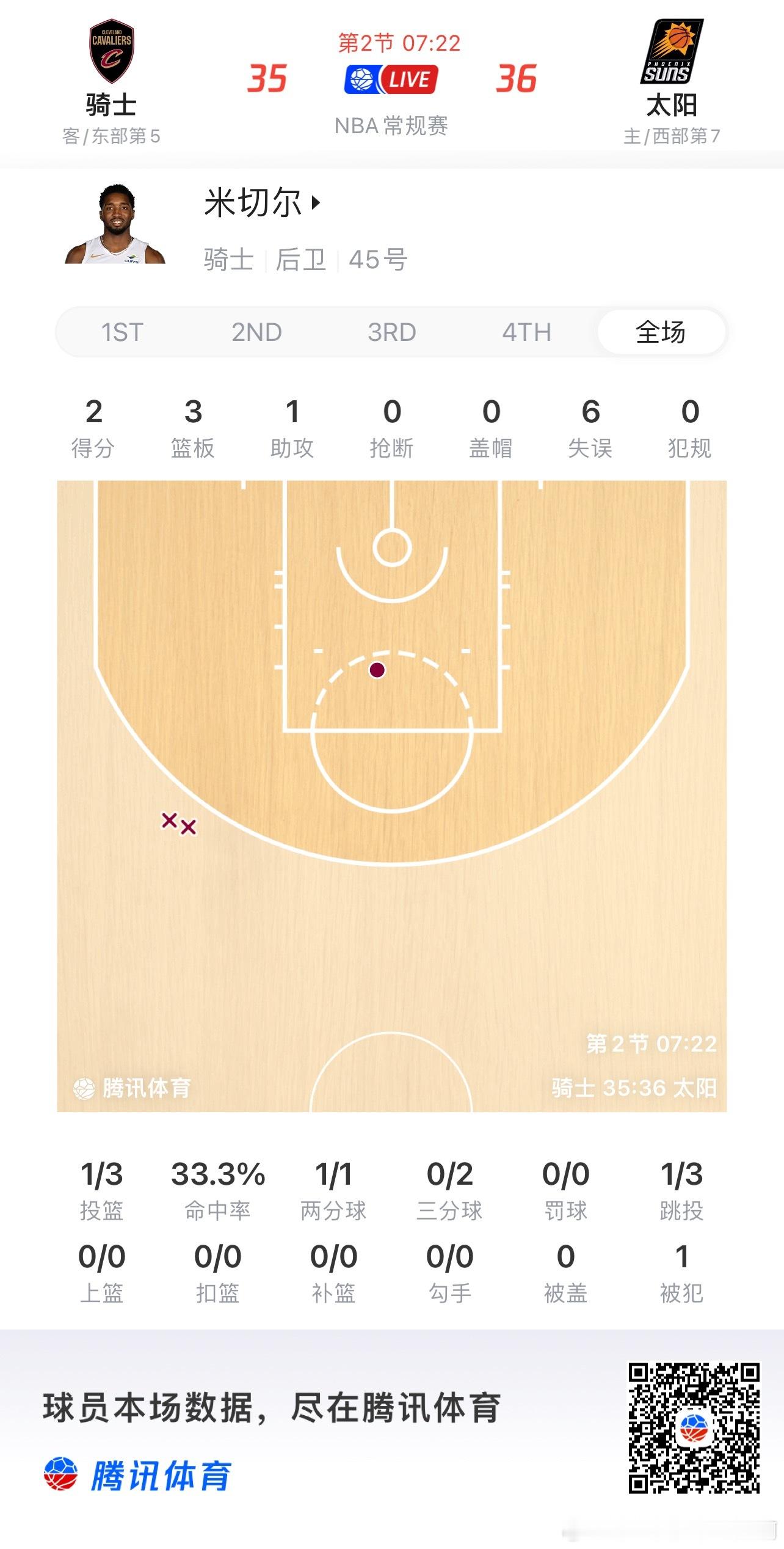 菲尼克斯太阳 半场JG吸取了前两次复发教训,第一节在身体没热起来的情况下参与无