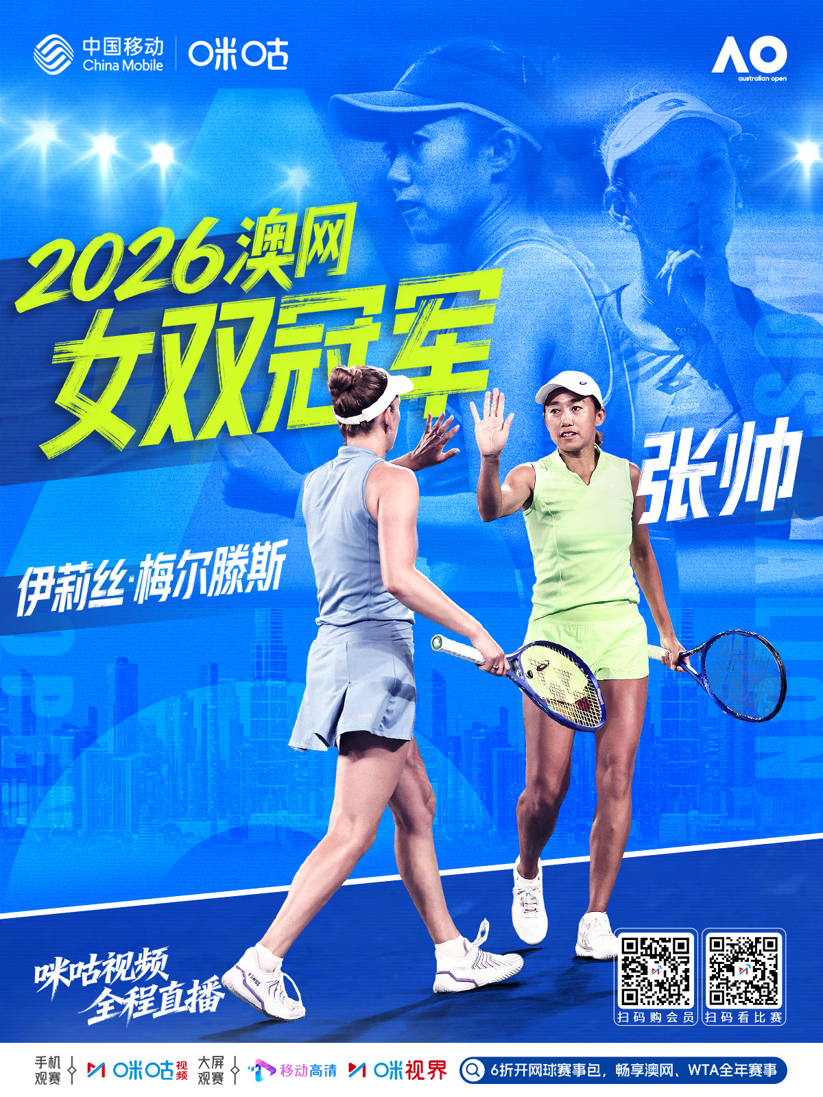 🏆#张帅澳网女双第二冠# 💪“我的人生由我自己定义”🎉 恭喜张帅/梅尔滕斯2:0赢得比赛🎾 #张帅时隔7年澳网女双夺冠 # #看2026澳网上咪咕# 🔗 网页链接