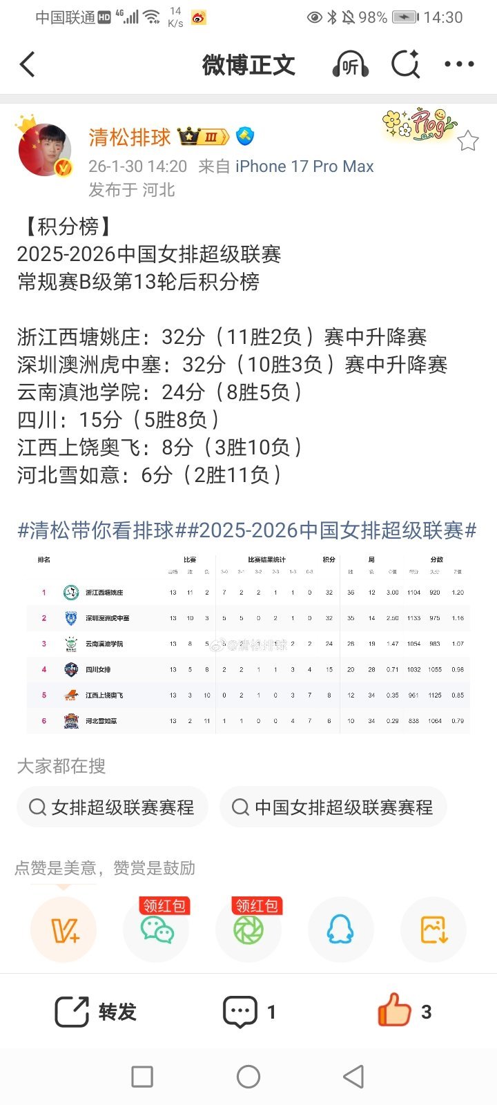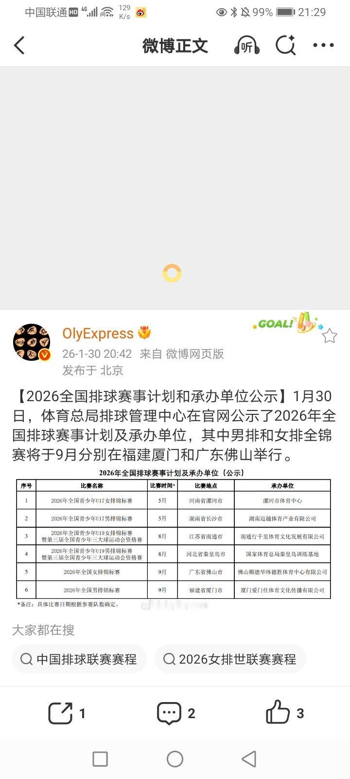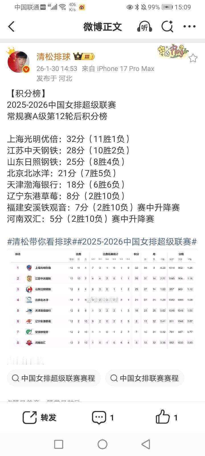 2026年1月31日-2025-2026CBA常规赛第21轮(第一阶段第21轮) 北控69-64青岛(潜力赛:14-21)(北控男篮获得三连胜/青岛男篮遭遇五连败)/南京(同曦)104-71大胜四川(南京同曦男篮获得两连胜/四川男篮遭遇21连负 继续一胜难求 继续积分榜垫底)/上海101-92逆转战胜深圳(潜力赛:29-15)(上海男篮成功复仇 获得两连胜/深圳男篮终结五连胜) 2025-2026女排超级联赛B级赛会制常规赛A组第5轮(第一阶段最后一轮) 河南青年队3-1天津青年队(25-21 24-26 25-15 25-17)(天津青年女排遭遇三连败)/江西青年队0-3福建青年队(13-25 14-25 9-25)(福建青年女排获得四连胜/江西青年女排遭遇四连负) 2025-2026女排超级联赛B级赛会制常规赛B组第5轮 辽宁青年队1-3被上海青年队逆转(25-22 16-25 20-25 23-25)(上海青年女排获得两连胜/辽宁青年女排遭遇三连败)/南京师范大学3-0江苏青年队(25-14 25-23 25-22)(南京师范大学女排获得四连胜/江苏青年女排终结三连胜 遭遇首败) 2025-2026男排超级联赛B级赛会制常规赛A组第5轮(第一阶段最后一轮) 河北青年队0-3中山大学(21-25 20-25 20-25)(中山大学男排获得五连胜/河北青年男排终结四连胜 遭遇首败)/广东青年队3-1天津青年队(25-20 25-27 25-15 25-20)(广东青年男排获得三连胜/天津青年男排遭遇四连败)/辽宁青年队0-3山东青年队(19-25 21-25 23-25)(山东青年男排终结两连败/辽宁青年男排遭遇五连负) 2025-2026男排超级联赛B级赛会制常规赛B组第5轮 浙江青年队0-3南昌大学(13-25 17-25 11-25)(南昌大学男排获得五连胜)/福建青年队0-3北京青年队(11-25 17-25 21-25)(北京青年男排终结四连败 获得首胜/福建青年男排遭遇两连败)/河南青年队0-3上海青年队(21-25 23-25 22-25)(上海青年男排获得四连胜/河南青年男排遭遇三连败) 2025-2026WCBA常规赛A组第21轮(第一阶段第21轮) 石家庄(河北)76-83被东莞(广东)逆转(卫冕冠军广东女篮继续排名小组积分榜次席)/江苏78-87山西(山西女篮获得十连胜 继续领跑小组积分榜/江苏女篮遭遇两连败)/武汉73-93被四川逆转(上届亚军四川女篮获得四连胜/武汉女篮遭遇两连败)/北京72-88山东(山东女篮获得两连胜/北京女篮遭遇五连败)/新疆104-70大胜浙江(新疆女篮获得七连胜/浙江女篮遭遇九连败 继续排名小组积分榜垫底) 部分重点赛事预告:CCTV5直播:19:30 2025-2026CBA常规赛第22轮(第一阶段第22轮) *浙江广厦-浙江稠州 CCTV5+直播:19:00 2025-2026女排超级联赛A级常规赛第一阶段第13轮 *北京-上海 CCTV5客户端直播:19:30 2025-2026CBA常规赛第22轮(第一阶段第22轮) 辽篮-天津 21:40 2026电动方程式赛车世锦赛迈阿密站排位赛 15:30/16:30/20:00 2025-2026女排超级联赛A级常规赛第一阶段第13轮 福建-河南/山东-江苏/天津-辽宁 15:30/19:00(2场) B级第14轮 广东(深圳)-云南/江西-河北/四川-浙江 其他:19:35(2场) 2025-2026CBA常规赛第22轮(第一阶段第22轮) 吉林-山西/山东-广州