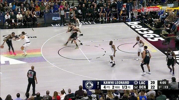 快船巨星伦纳德真是嚣张至极!在今天快船客场挑战掘金的焦点战中,当时比赛进行到了第一节的四分多钟,伦纳德先是在防守端完成了一次非常精彩的的飞身抢断,随后伦纳德在快攻反击中接队友科林斯的传球面对空篮完成了一记气势如虹的双手暴扣,直接打停了掘金。值得一提的是,伦纳德在暴扣得手后还非常嚣张的做了一个挂筐庆祝。