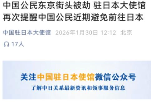 听劝吧,近期不要再去日本了!1月30日,中国驻日本大使馆向日本发出严正交涉,就2位中国公民在日本被抢劫,损失约合人民币 1900 万元之事,要求日本尽快尽快破案,保护在日中国公民生命财产安全。 事发在1月29号晚上九点半左右,地点就在东京上野附近,也就是以前大熊猫晓晓和蕾蕾住的上野动物园周边。 当时有5个人正在路边搬箱子,里面有2名中国公民和3名日本公民,年龄从二十多岁到四十多岁不等,他们正忙着把3个大行李箱往车上装,谁也没留意,3名陌生男子已经驾着车悄悄靠近,下手又快又狠。 劫匪二话不说,就往这5个人身上喷疑似催泪喷雾的东西,其中一名四十多岁的中国大叔被喷得最狠,睁不开眼、喘不上气,根本没力气反抗,这伙人趁乱拎起3个箱子就往车上塞,动作快得像早就踩好点一样。 更过分的是,劫匪抢完钱逃跑的时候,还撞了一个路过的五十多岁路人,然后不管不顾地加速逃窜,现场乱成一团,周围路人吓得不敢上前,等日本警方赶到,劫匪早就没了踪影,只留下被呛得浑身难受的受害者。 大家可能不知道,这3个箱子里装的全是现金,足足有4.2亿日元,折算成人民币差不多1900万,可不是小数目。网上好多人纳闷,现在都什么年代了,转账多方便,为啥还要用现金运输,这不等于给劫匪可乘之机吗? 这事还没等大家议论完,更惊魂的来了,就在街头劫案发生3个小时后,也就是1月30号凌晨零点十分左右,东京羽田机场的停车场里,又出了一起一模一样的袭击案,嫌疑人还是3个人,手法也完全一样。 这次的受害人是一名日本男子,身上带着1.9亿日元现金,折算成人民币也有800多万,劫匪同样是驾车靠近,往他身上喷催泪喷雾,还好这名男子反应快,死死抱住装钱的箱子,劫匪没来得及抢走现金,只能仓皇逃走。 日本警方介入调查后,很快就发现了不对劲,两起案子都是3人团伙、驾车作案、用催泪喷雾,目标还都是大量现金,怎么看都不是巧合,警方当场就判断,这两起案子极有可能是同一伙人干的,已经并案调查。 咱们驻日本大使馆,得知消息后一点没耽误,1月30号当天就向日本警方提出了严正交涉,态度特别坚决,明确要求日方尽快破案,把劫匪绳之以法,更要切实保护好在日本的所有中国公民,不管是人身还是财产安全。 使馆还特意升级了安全提醒,反复告诫咱们国人,近期尽量别去日本;要是已经在日本的,一定要多留心,少去人少的地方,别随身携带大量现金,遇到紧急情况,要及时报警并联系使馆求助。 使馆还公布了求助电话,日本当地报警打110,咱们国家的外交部全球领事保护热线是+86-10-12308,24小时有人值守,不管什么时候,只要咱们中国人在海外遇到危险,国家都会第一时间站出来撑腰。 以前不少人都觉得,日本治安好,去那旅游、办事都放心,可这次的事,彻底打破了大家的固有印象,说白了,没有哪个国家的治安是绝对安全的,咱们能做的,就是提高警惕,保护好自己。 使馆的及时交涉,其实就是给咱们海外公民吃了一颗定心丸,告诉全世界,中国人在海外绝不能被随意欺负,也希望日本警方能给力点,尽快抓到劫匪,同时好好整改治安,别再让类似的事情发生。 这件事也给所有人提了个醒,出门在外,安全永远是第一位的,而一个国家对海外公民的保护力度,就是咱们最硬的底气,相信以后,不管咱们中国人走到哪里,身后都有强大的祖国撑腰,都能安心、放心。 大家对此有什么看法呢?欢迎各位在评论区留言!