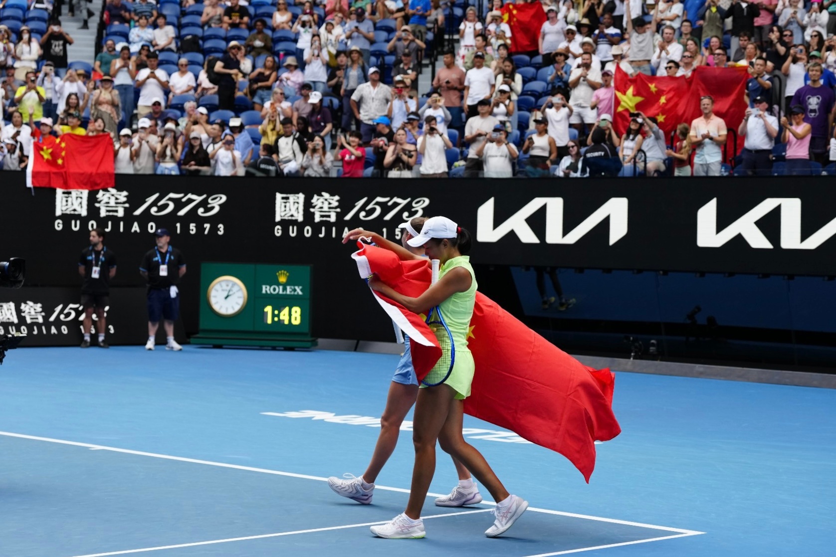 张帅大满贯第三冠澳网2026坚持的意义!女双决赛,张帅/梅尔滕斯组合7-6(4)/6-4战胜达尼丽娜/克鲁尼奇,夺得冠军🎊