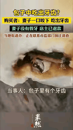 解释不清了!一女子正在吃丈夫从早餐店买的包子,谁知,才咬一口就感觉包子里有个硬物,吐出来一看,才发现那竟然是一颗牙齿,而且不像假牙! 大清早的,妻子随口提了句想吃包子,丈夫转身就去了家附近的老店。这家店在街坊里也算小有名气,包子皮暄馅足,平日里生意倒也红火。 妻子接过包子就咬了第一个,边吃还边夸味道地道,没成想第二个刚入口,牙齿就被硬东西狠狠硌了一下。她起初只当是肉馅里的碎骨头,吐出来一看,浑身的鸡皮疙瘩都起来了。 那分明是一颗牙齿,牙根处还嵌着金属片,怎么看都不是假牙,实打实的真人牙。妻子当场就往垃圾桶里猛吐痰,冲到洗手间反复漱口,胃里翻江倒海的,止不住地干呕。 丈夫瞧见这颗牙齿,火气一下子就上来了,拎着没吃完的包子和这颗牙,当即就去找包子铺讨说法。店主倒是没狡辩,麻溜地退了钱,可这事哪是退钱就能抹平的。 夫妻俩越琢磨越觉得不对劲,好好的包子里吃出真人牙,后厨的卫生状况可想而知。他们拍了照留了证,转头就把这事反映给了街道办,工作人员说会尽快联系市监部门上门调查。 这事传到网上,网友们也都炸开了锅,没人不觉得膈应。有人说,十有八九是后厨师傅干活时牙齿掉了,自己都没察觉,就混进馅儿里包了包子,这卫生管理也太糊弄了。 也有网友分享了自己的糟心事,在外吃饭吃到头发、虫子是常事,大多时候老板免单道歉,也就算了,可吃出牙齿这种事,已经不是简单的卫生问题,是真的让人心里发怵。 还有人说,在外就餐只能自己多留意,可眼睛再尖,也防不住这种藏在馅儿里的异物,说到底还是商家得守好卫生的底线,后厨管理得跟上,不然谁还敢放心吃。 外面吃饭图的是方便,可食品安全永远是第一位的。一颗牙齿吃出的不仅是恶心,更是对餐饮商家的警醒,卫生这块儿,半点都马虎不得。不知道大家在外吃饭,有没有遇到过这种糟心的异物?