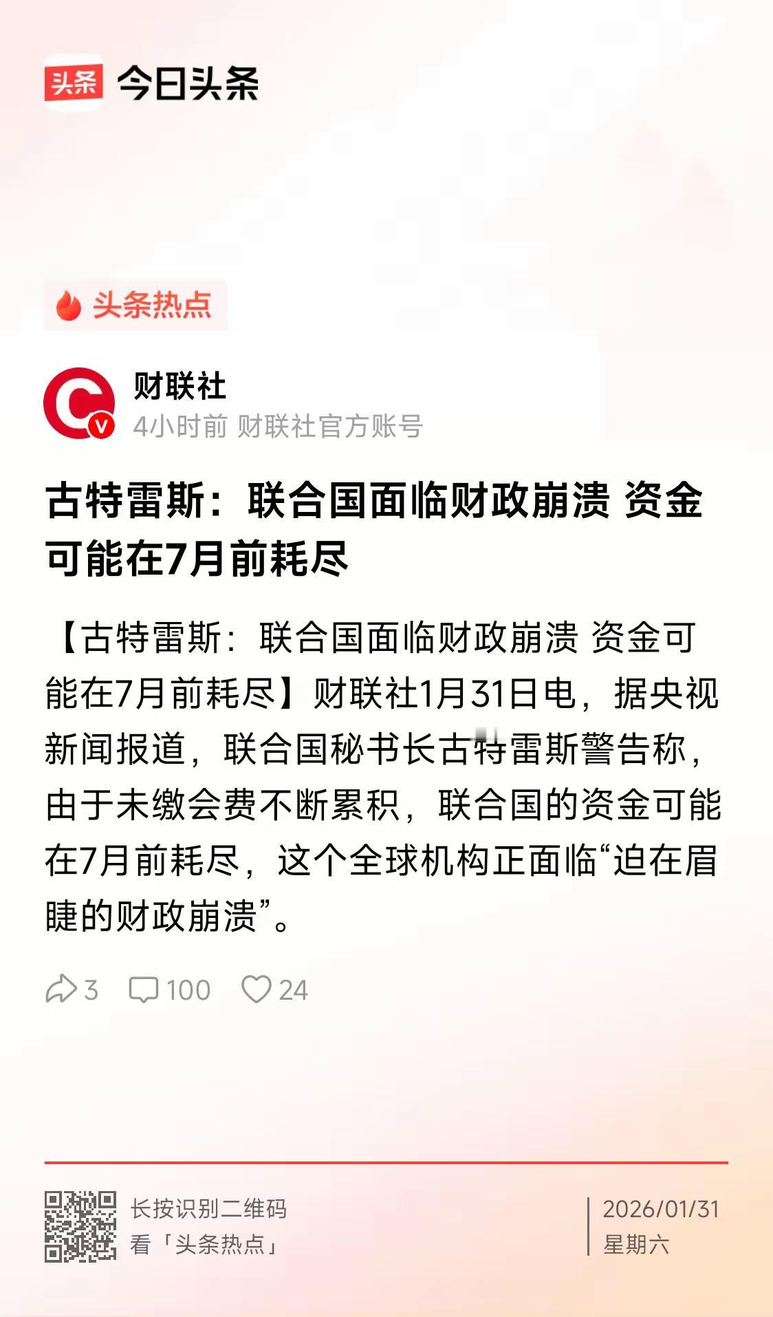 古特雷斯的警告揭示一个残酷的事实:目前状态下,联合国离开了美国生存不去了。 由于美国大量拖欠联合国会费,联合国面临财政崩溃。其中美国会费应交最多,拖欠也最多。 美国是安理会常任理事国,手里有一票否决权,在联合国里说话分量特别重。这些年它虽然老搞单边主义,动不动就“退群”,但真要彻底抽身,联合国在好多国际事务上的协调能力肯定会受影响。