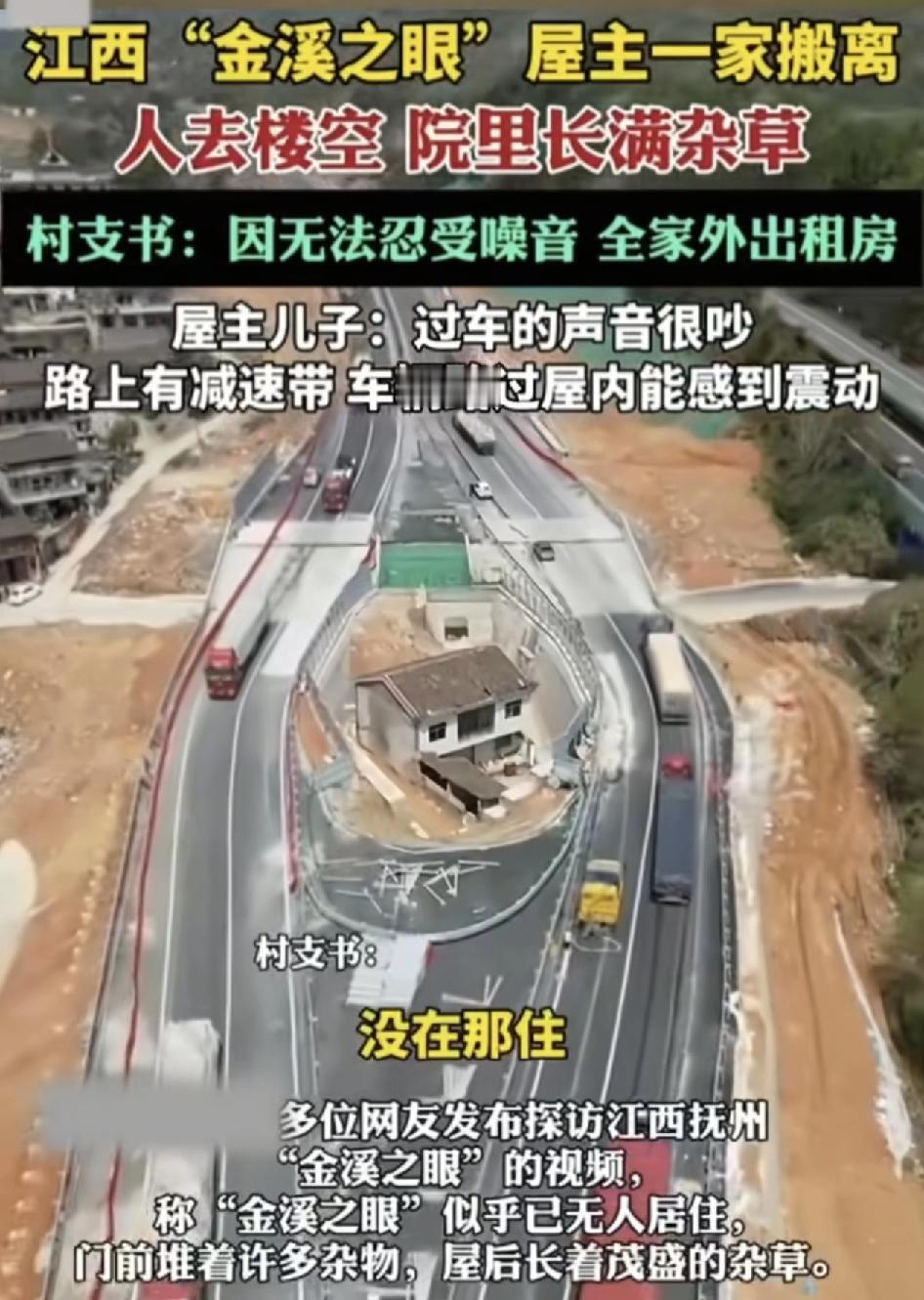 江西抚州备受关注的金溪之夜,最近有网友发现房主已经搬离房子。村支书介绍,家人已经到镇上租房子住,之前因为房主不满意政府的拆迁补偿条件,坚持不拆迁,为了道路的施工发展,只能绕着两边建成道路。房主称因为噪音太大,路上还有不少的减震带。车经过的时候房子会震动,忍受不了这些噪音的困扰只能搬离,但是对于事后。以后该房子是否会拆除,还是未知之数。